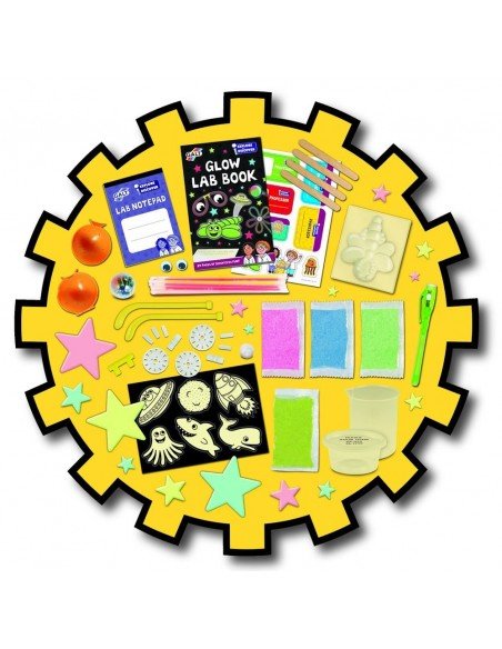 Susipažinkite su šviečiančių tamsoje daiktų pasauliu ir sužinokite kodėl jie švyti. Šiame jaudinančiame rinkinyje rasite instrukcija ir 11 linksmų eksperimentų. Pažaiskite su švytinčiomis lazdelėmis, pagaminkite savo šviečiantį tamsoje šokliuką ir gleivėtą slieką. Taip pat pagaminkite šviečiančius akinius ir atskleiskite žinutes užrašytas nematomu rašalu. 20 švėčiančių pagaliukų, 13 pagaliukų- sujungimų, Judančios akys, Šokliuko forma, Mirgsinti LED kapsulė, Šviečiantys tamsoje kristalai maišeliuose, 15 švėčiančių žvaigždučių, UV rašiklis su juodos šviesos žibintuvėliu, Plastikinis puodelis, Švytinčių gleivių milteliai, Puodelis gleivėms, Mediniai pagaliukai, Lipnus plastelinas, Vabalo forma, Atspausdintas kartono lapas, Užrašų Knygutė, Lipdukų lapas.