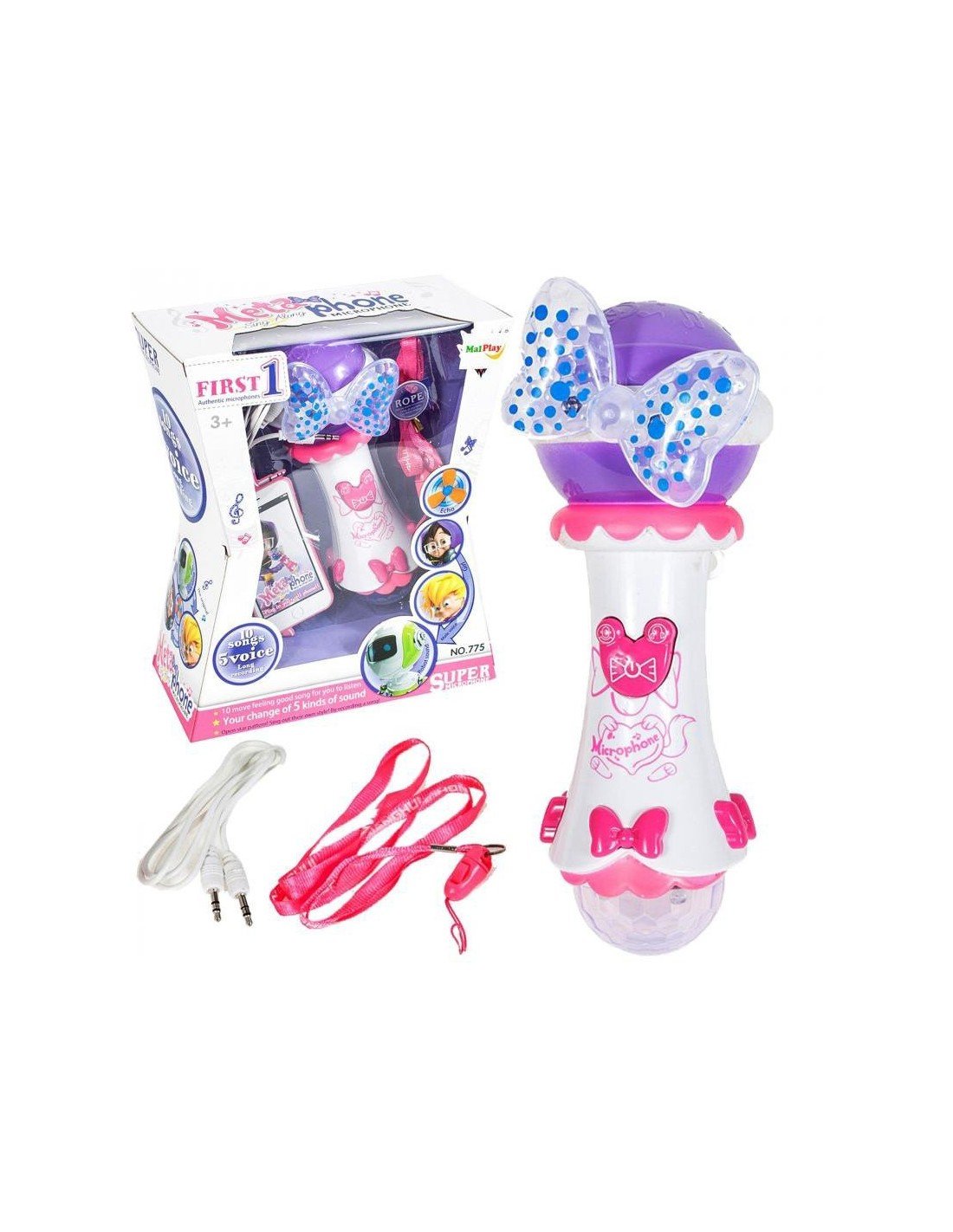 Mikrofonas FIRST 1, 10 melodijų + 5 rūšių garsai + irašymo funkcija + šviesos efektai