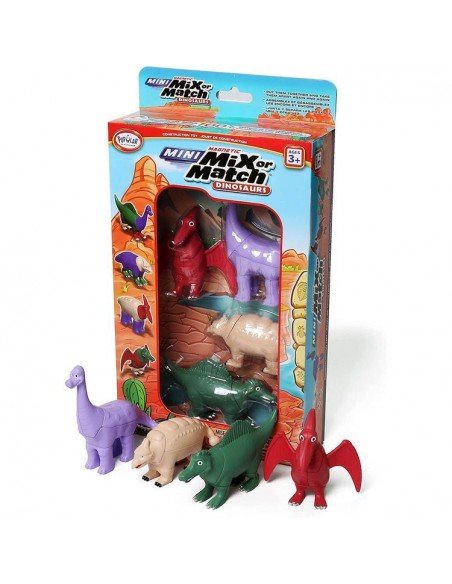 Mix or Match Dinosaurs yra žaidimas, skirtas kūrybiškam vystymuisi. Kiekviename rinkinyje rasite Brontozaurą, Spinozaurą, Ankilozaurą ir Pterodaktilą, kurie gali būti derinami ir maišomi daugybe skirtingų kombinacijų, kokias tik vaikas gali įsivaizduoti. Tiesiog sujunkite juos, o tada išardykite ir kartokite vėl ir vėl kurdami tiek realius, tiek savo vaizduotės sugalvotus, dažnai juokingus dinozaurus! Detalėse paslėpti magnetai leidžia jas lengvai sujungti ir atskirti.