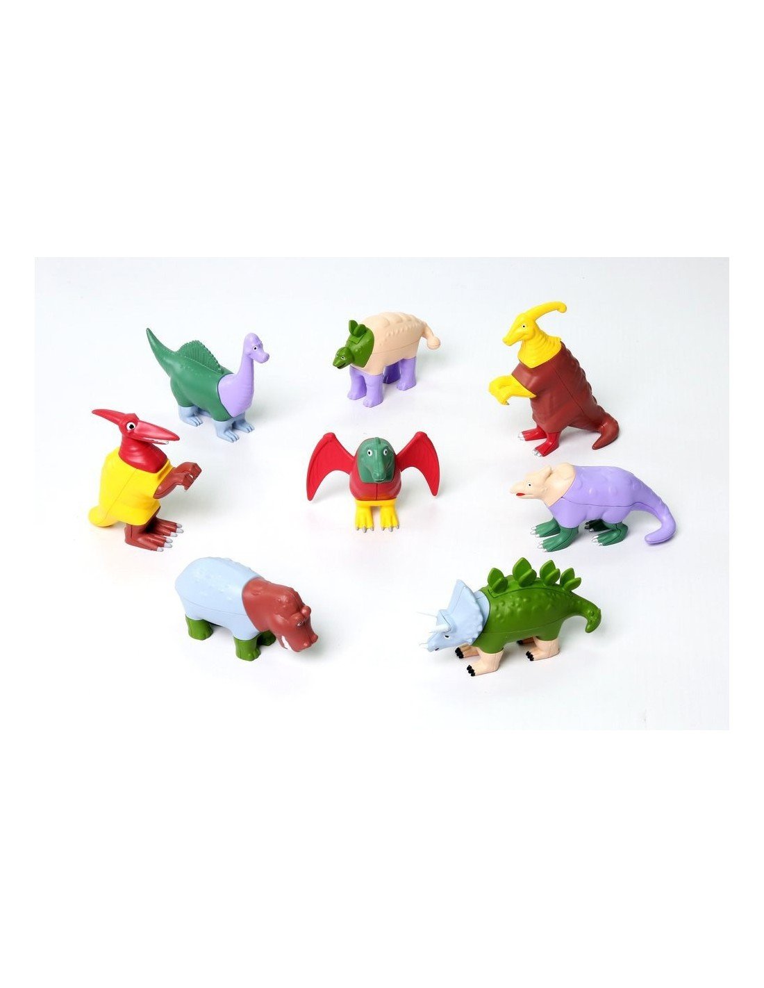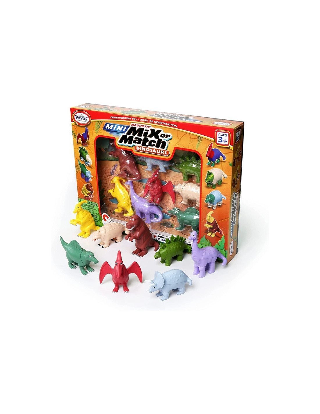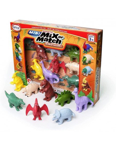 Mix or Match Dinosaurs yra žaidimas, skirtas kūrybiškam vystymuisi. Kiekviename rinkinyje rasite Brontozaurą, Spinozaurą, Ankilozaurą ir Pterodaktilį, Stegosaurą, Triceratopsą, Parasaurolopnusą, T-reksą kurie gali būti derinami ir maišomi daugybe skirtingų kombinacijų, kokias tik vaikas gali įsivaizduoti. Tiesiog sujunkite juos, o tada išardykite ir kartokite vėl ir vėl kurdami tiek realius, tiek savo vaizduotės sukurtus, dažnai juokingus dinozaurus! Detalėse paslėpti magnetai leidžia jas lengvai sujungti ir atskirti.