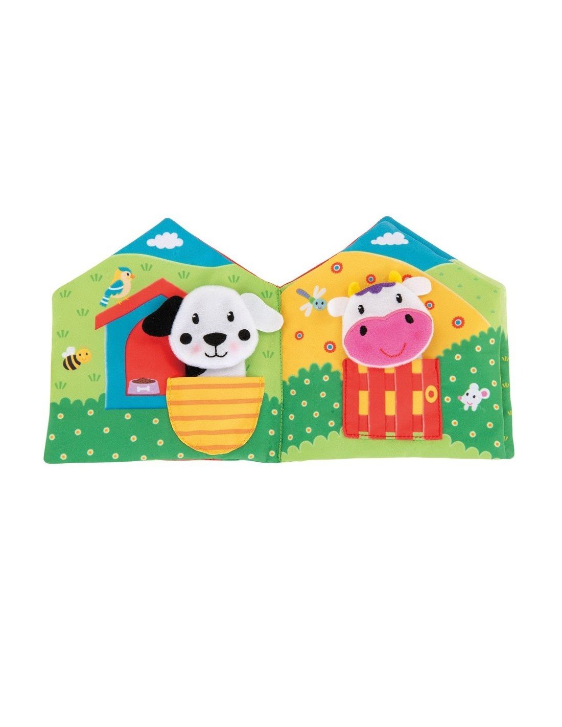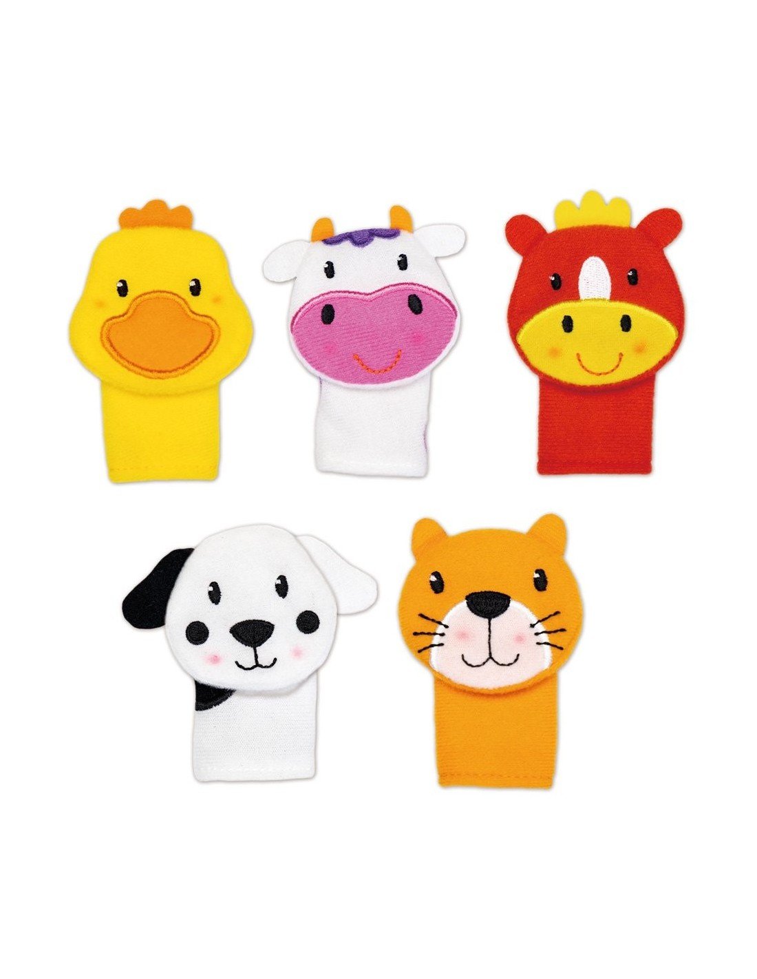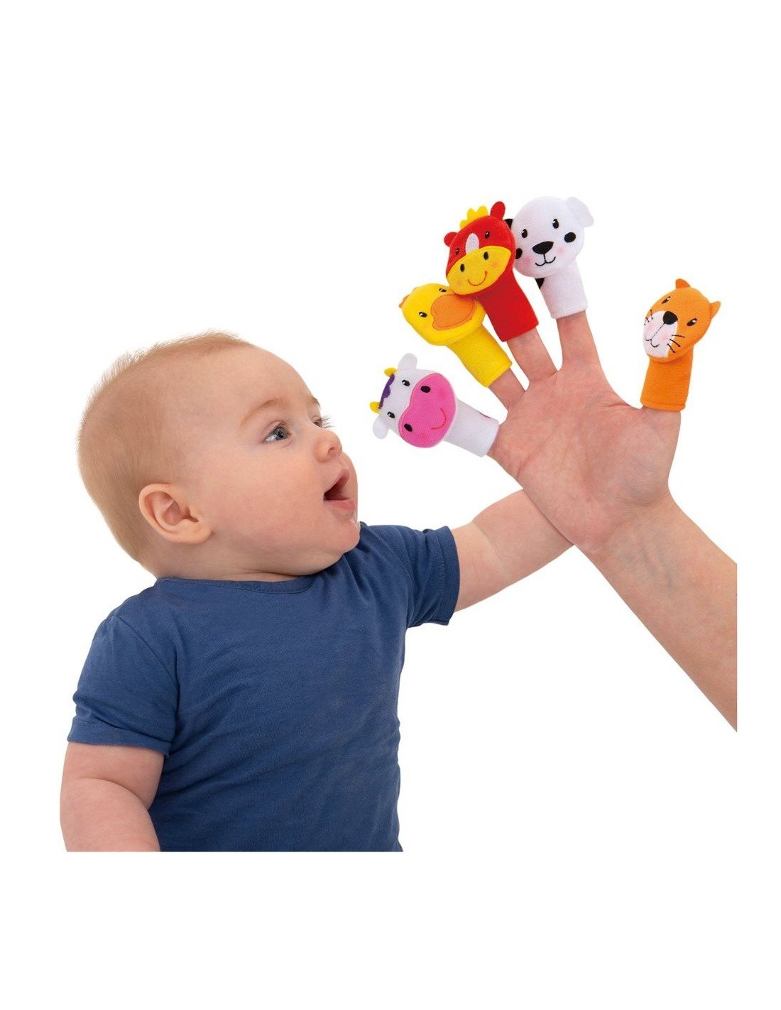 5 pirštų marionečių ir 6 puslapių knygutė su kišenėle kiekvienai. Spalvotos, besišyosančios marionetės skątins vaika sutelkti demėsį skirtingais atstumais, priklausomai nuo jūsų pirštų judėsių. Vaikui augant galite įdėti marionetes į joms skirtas kišenes knygutėje ir pakalbėti apie gyvūnus ir jų gyvenimo vietas. Žaislą galima skalbti.