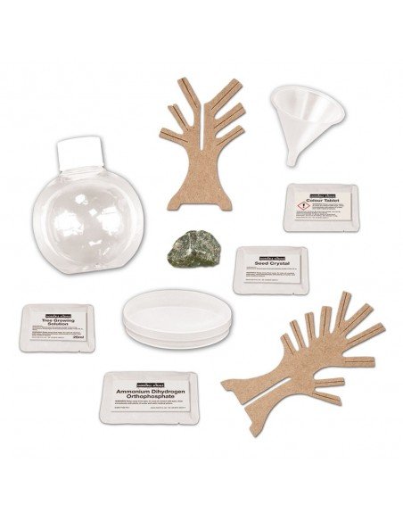 Užauginkite nepaprastą kristalų medį, sukurkite deimantus ir kristalus su šiuo nuostabiu rinkiniu. Sužinokite kaip atsiranda kristalai ir kelis svarbiausius faktus apie juos. Sudėtis: amonio dvivandenėlio fosfatas (50g), medžio auginimo mišinis, medžio kortelės, lekštelė, spalvu paletė, kristalo sėkla, apvalus buteliukas, piltuvėlis, kalkakmenis, instrukcija su įdomiais faktais.