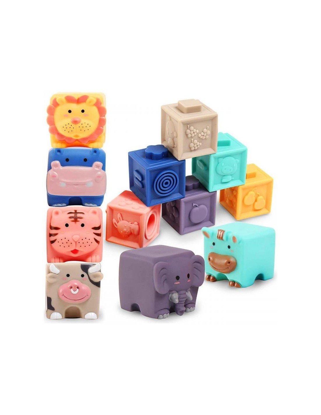 Minkštos sensorinės kaladėlės 5.5cm Žvėrys 12 vnt., 6 mėn.+