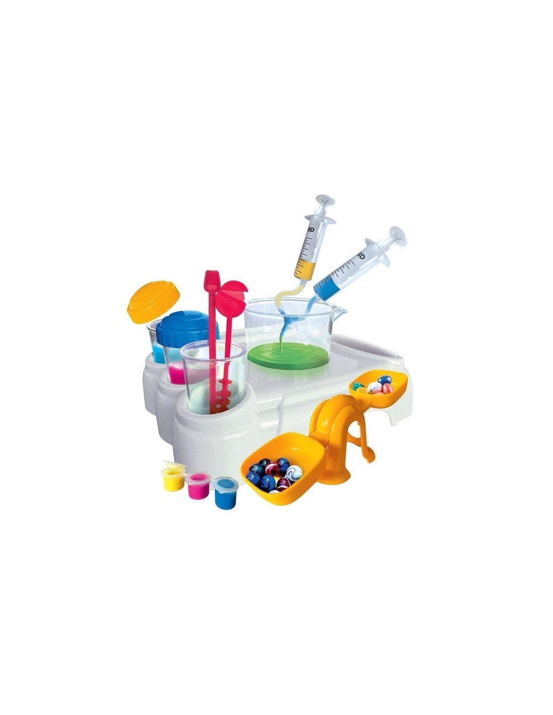 Šis rinkinys buvo specialiai sukurtas ir pagamintastam, kad padėti vaikui susipažinti su mokslo pasauliu. Rinkinyje yra keli paprasti iliustruoti eksperimentai, kurių dėka vaikai susipažins su pagrindinėmių ir išvestinėmių spalvų savybėmis, skysčių ir kietųjų medžiagų matavimo vienetais bei vandens ir mišinių savybėmis.