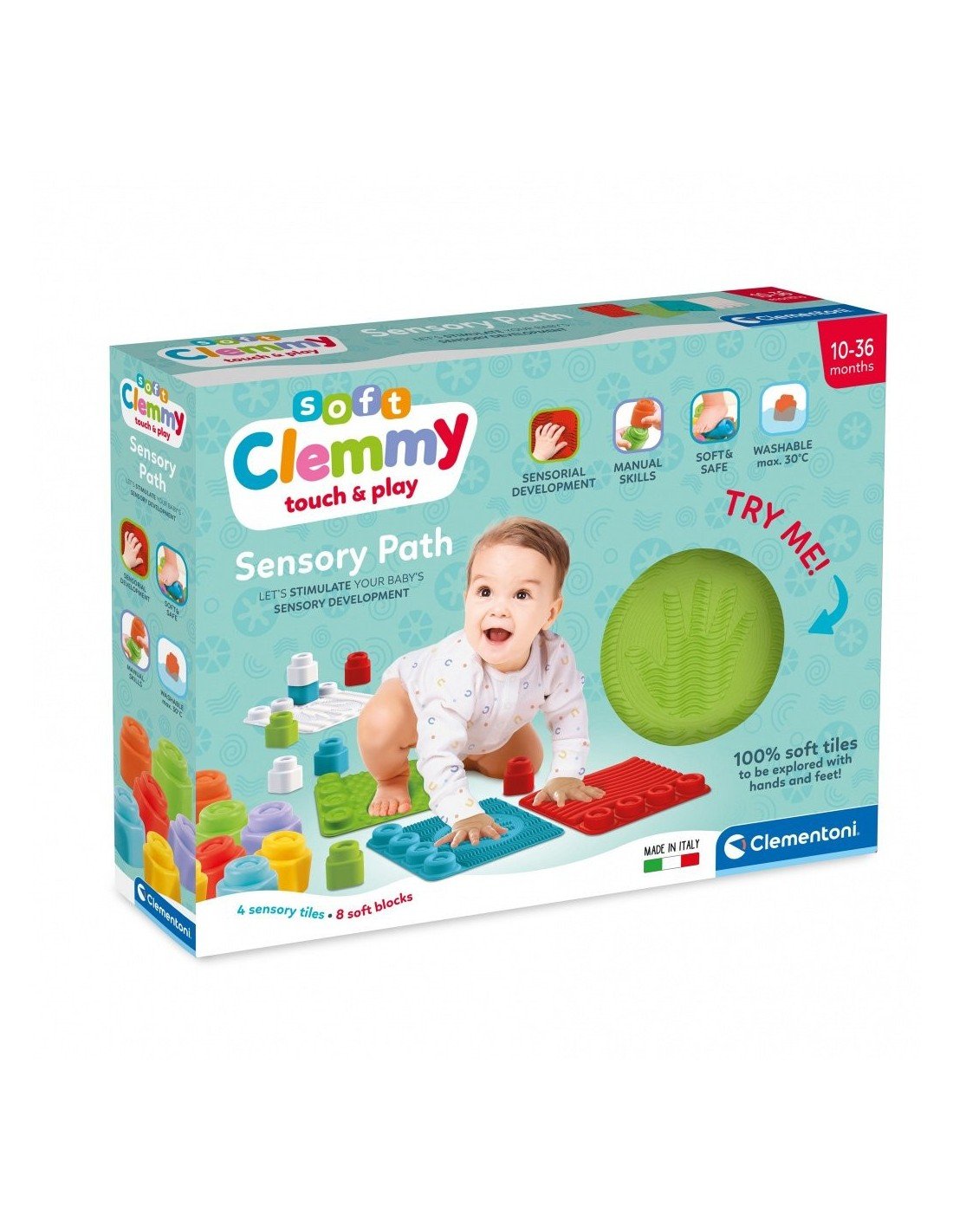 Sensorinis minkštas takelis 8 det. + 8 minkštos kaladėlės, 6 mėn.+