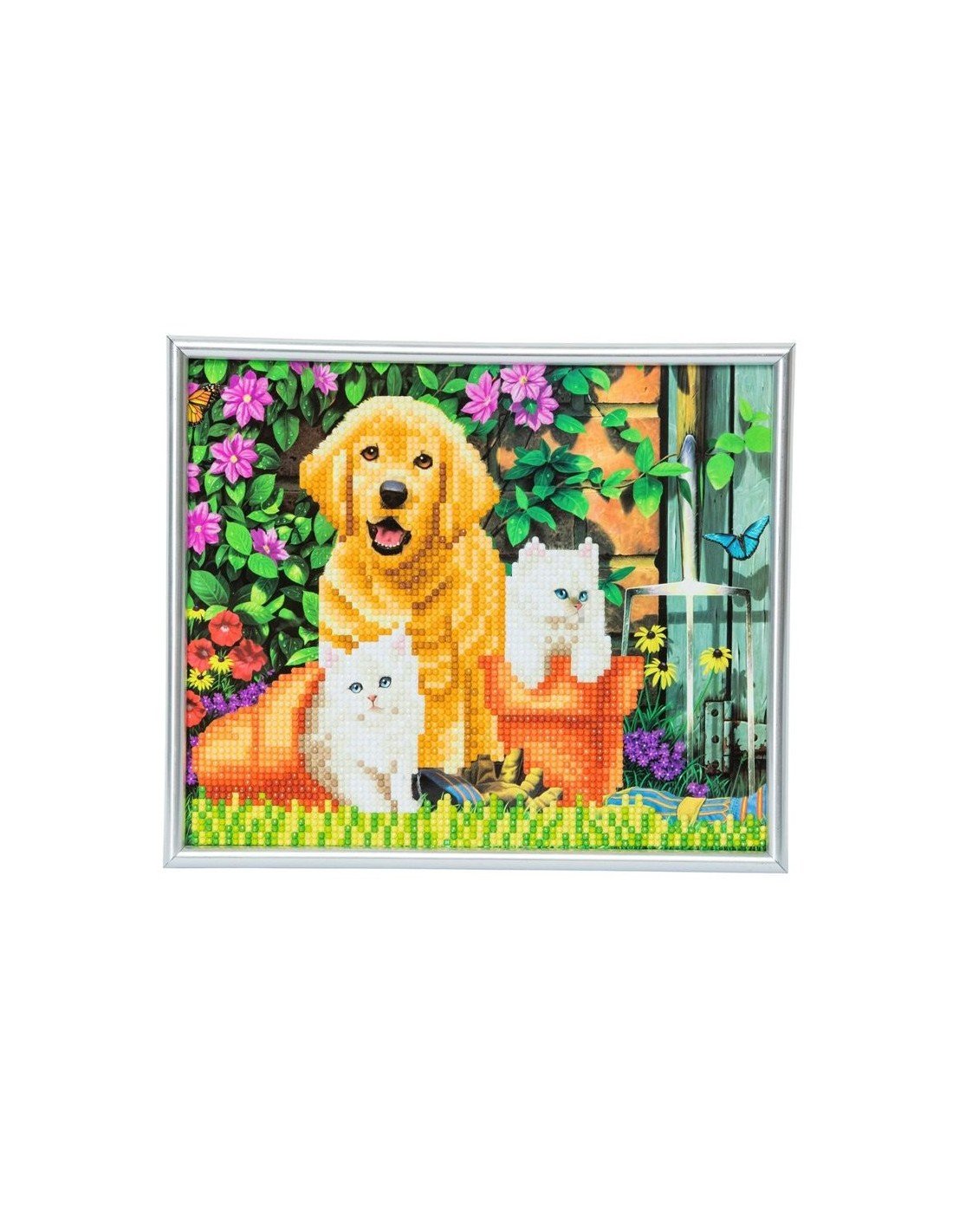 Rinkinys CRYSTAL ART Kačiukai ir šuo 8m.+ su rėmeliu 25x21cm
