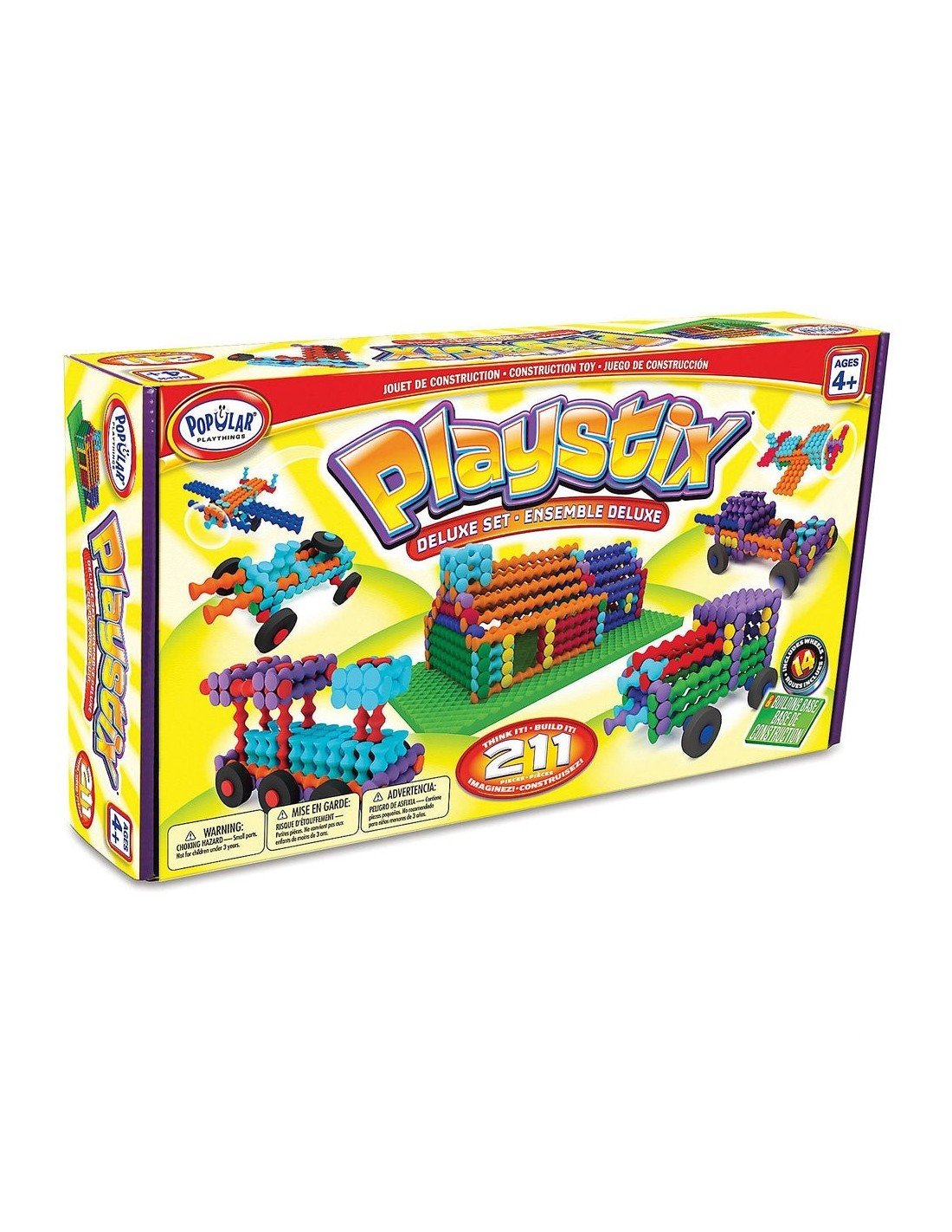 Sveiki atvykę į Playstix konstravimo šalį! Čia galėsite konstruoti nesudėtingas figūras, arba pagauti įkvėpimą ir sukurti kažką nepaprasto. Juk taip smagu sukonstruoti kėdutę,namą, lenktyninį automobilį, lėktuvą ar buldozerį. Dėliok detales vieną ant kitos arba naudokis sukabinimo ir sutvirtinimo funkcija, kuri neleis iširti tavo konstrukcijoms. Deluxe rinkinyje pateiktas pagrindas padės lengviau kurti ant stabilaus paviršiaus. Tad ko laukiate? Laikas imtis konstravimo!