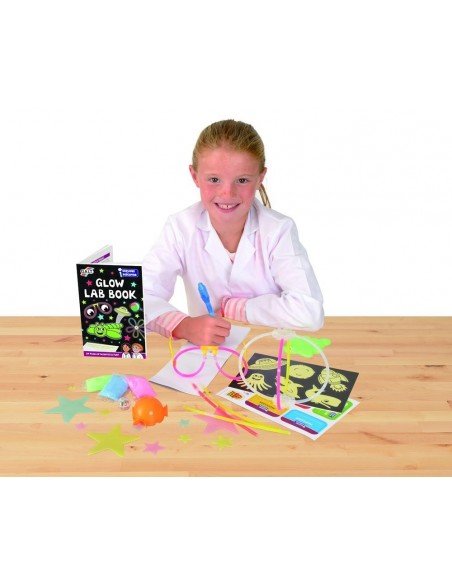 Susipažinkite su šviečiančių tamsoje daiktų pasauliu ir sužinokite kodėl jie švyti. Šiame jaudinančiame rinkinyje rasite instrukcija ir 11 linksmų eksperimentų. Pažaiskite su švytinčiomis lazdelėmis, pagaminkite savo šviečiantį tamsoje šokliuką ir gleivėtą slieką. Taip pat pagaminkite šviečiančius akinius ir atskleiskite žinutes užrašytas nematomu rašalu. 20 švėčiančių pagaliukų, 13 pagaliukų- sujungimų, Judančios akys, Šokliuko forma, Mirgsinti LED kapsulė, Šviečiantys tamsoje kristalai maišeliuose, 15 švėčiančių žvaigždučių, UV rašiklis su juodos šviesos žibintuvėliu, Plastikinis puodelis, Švytinčių gleivių milteliai, Puodelis gleivėms, Mediniai pagaliukai, Lipnus plastelinas, Vabalo forma, Atspausdintas kartono lapas, Užrašų Knygutė, Lipdukų lapas.