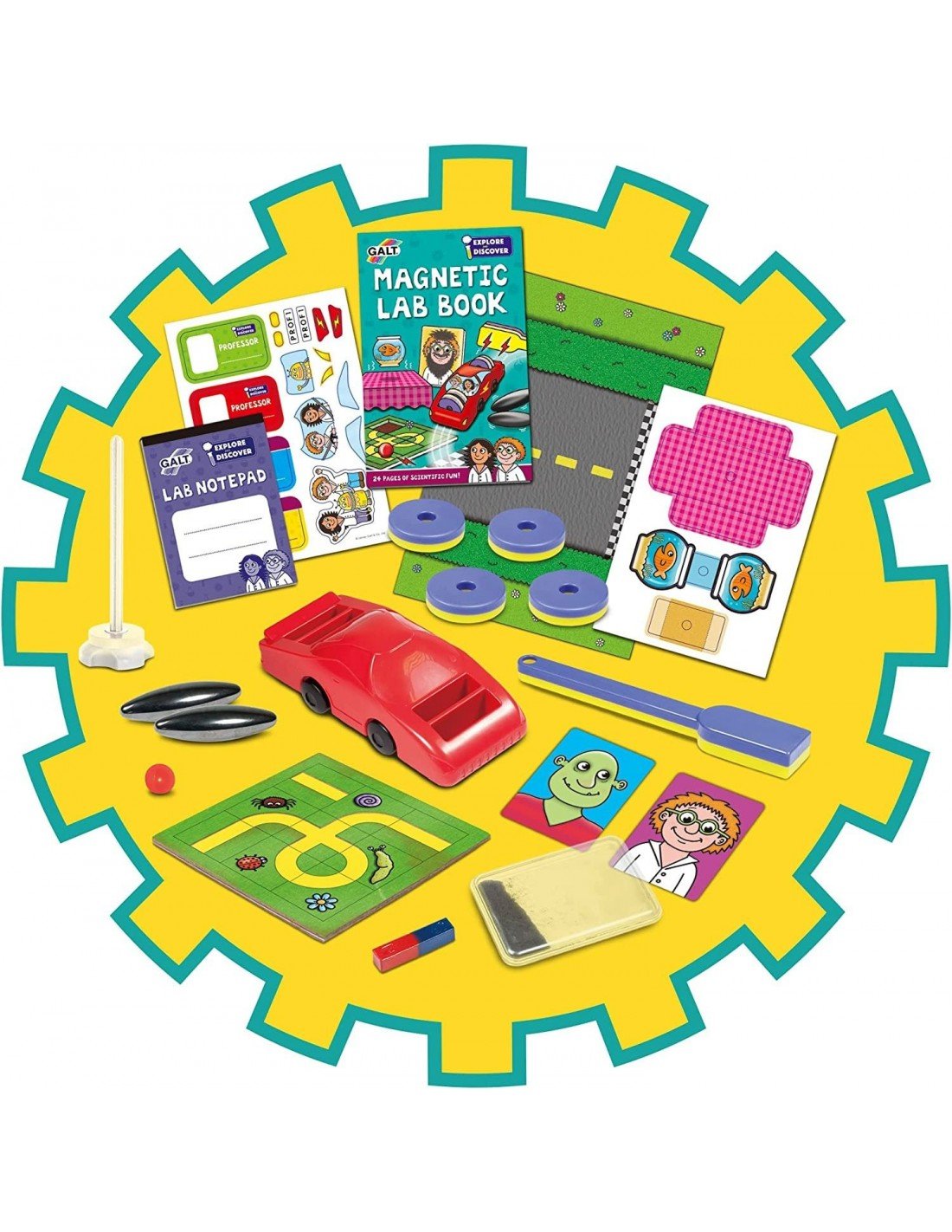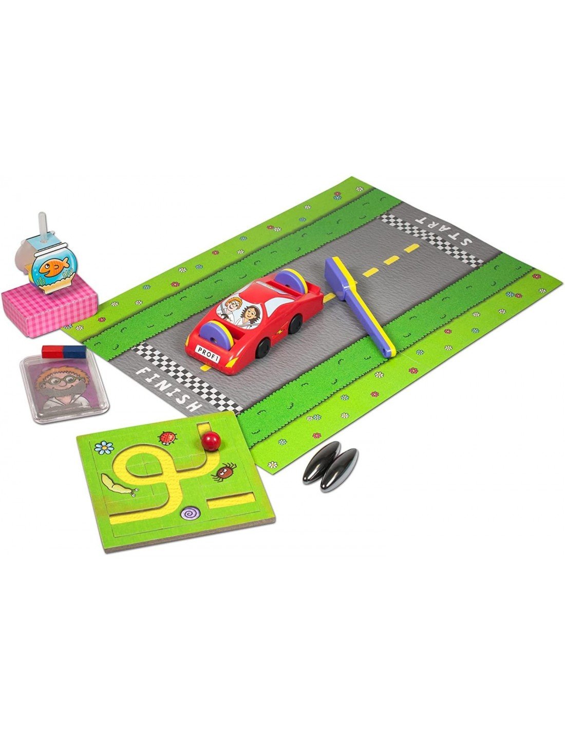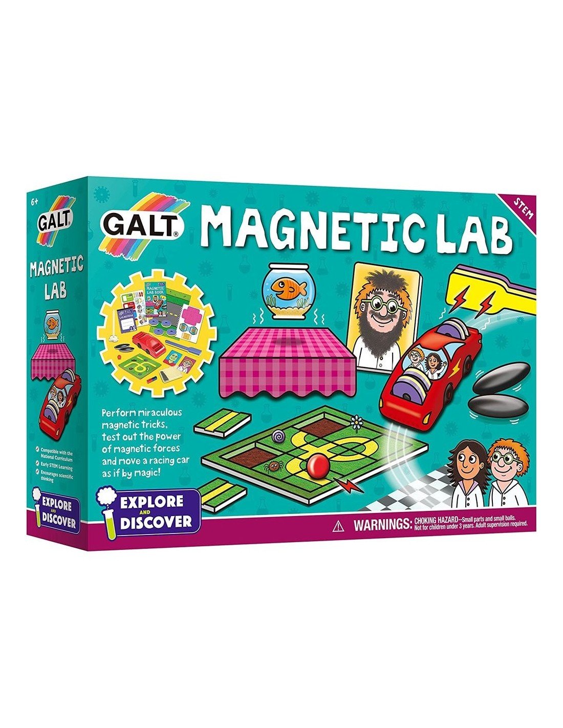 Surinkite magnetais varomą mašinytę, skleiskite barškančius garsus ir išmokite atlikti neįtikėtiną levitacijos triuką! Surinkinėkite labirintus ir kūrkikte komiškus veidus. Visus 9 šio rinkinio eksperimentus atliksite magnetų dėka ir išmoksite apie magnetinės traukos jėgas!