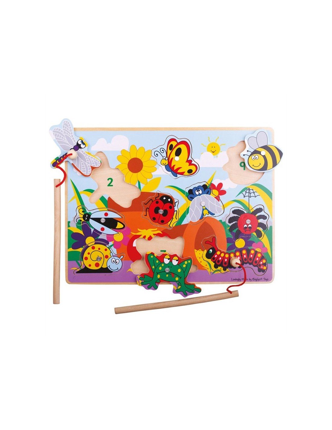 Magnetinė medinė žvejyba Vabždžiukai, 29x20x1cm, 18mėn.+