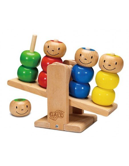 Supamas medinis žaislas su keturiais spalvotais, draugiškais karoliukų personažais.Rūšiuokite, dėkite ir skaičiuokite stambius karoliukus ant keturių pagaliukų. Idealus supažindinant vaiką su balanso samprata, priežasties ir pasekmės mokymasis. Sukurtas lavinti akių - rankų koordinaciją ir motoriką, supažindinti su spalvomis. Pagamintas iš kokybiškos medienos. Skirta vaikams nuo 12 mėnesių.