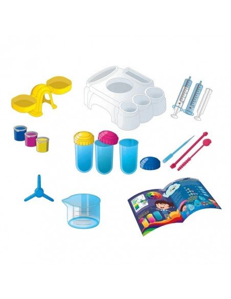 Šis rinkinys buvo specialiai sukurtas ir pagamintas tam, kad padėti vaikui susipažinti su mokslo pasauliu. Rinkinyje yra keli paprasti iliustruoti eksperimentai, kurių dėka vaikai susipažins su pagrindinių ir išvestinių spalvų savybėmis, skysčių ir kietųjų medžiagų matavimo vienetais, bei vandens ir mišinių savybėmis.