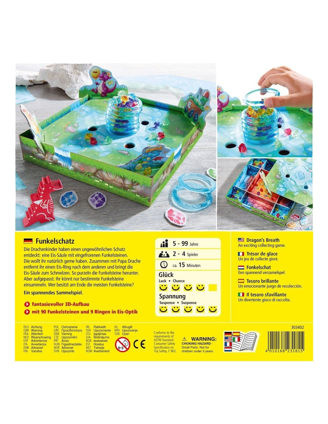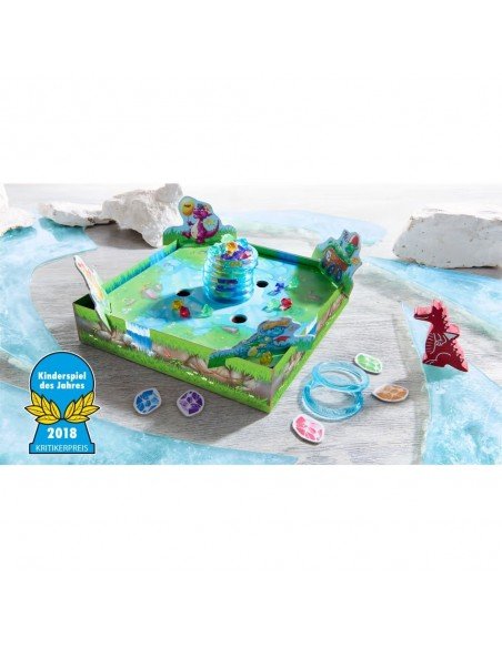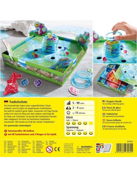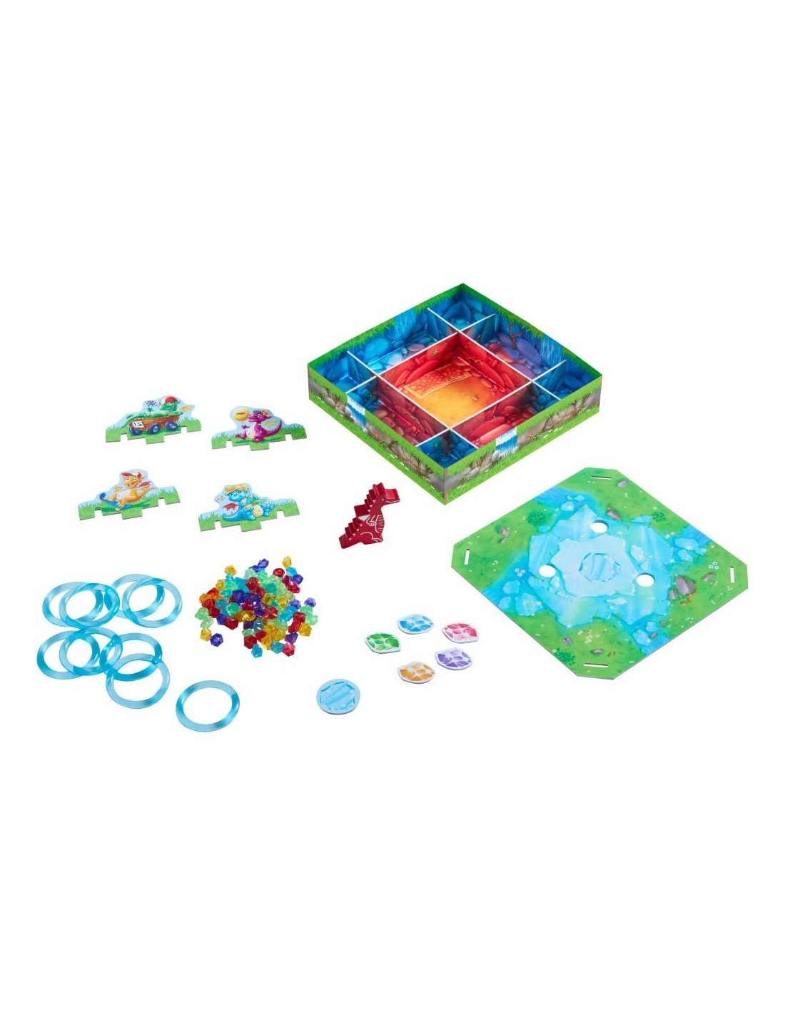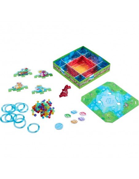 4 drakonėliai-vaikučiai; dėžutė pagrindas su 4 pertvarom; žaidimo laukas; tėtis-drakonas; 90 brangakmenių ( po 18 vnt. 5 skirtingų spalvų); 9 ledo žiedai; 1 ledo lyties žetonas; 5 spindinčių brangakmenių žetonai.