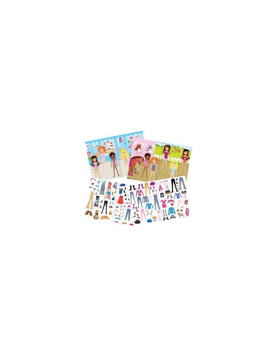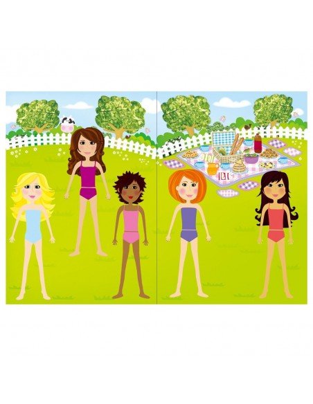 20 spalvingų puslapių su “Girl Club” personažais, kuriuos galėsite aprengti ir papuošti lipdukais. Knygutėje rasite 10 puslapių su 300 drabužių bei aksesuarų lipdukais.