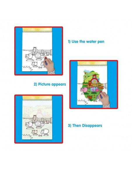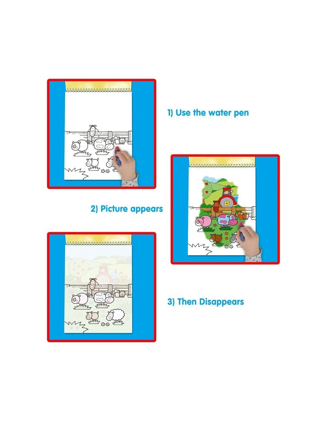 Daugkartinio naudojimo spalvinimo knygutė su vandens teptuku. Nuspalvink lapą vandeniu ir atsiras puikus spalvotas piešinukas,kuris vėl išnyks, kai tik vanduo išdžiūs. Galima spalvinti vėl ir vėl. Ideali naudoti kelionėje.