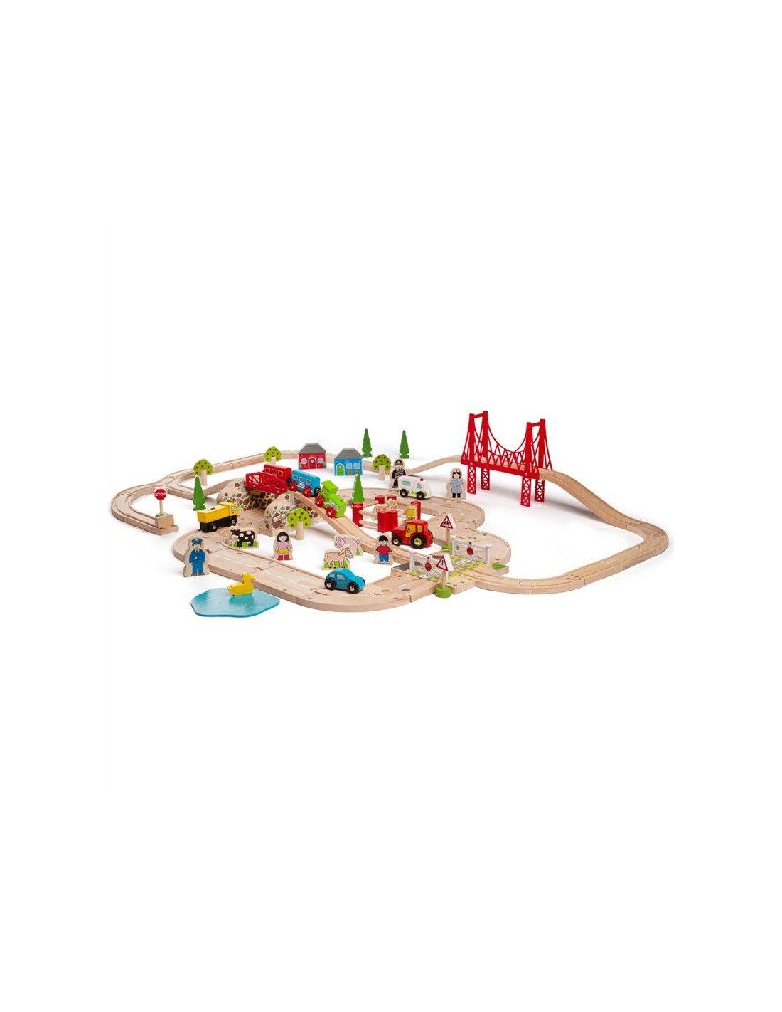 Rinkinys traukinys su bėgiais + automobilių kelias, 77 det., 116cmx75cm