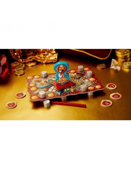 Išdėstykite sidabrinius grynuolius ant stalo ir padėkite ant jų žaidimo lauką taip, kad iš po jo nesimatytų nei vieno grynuolio. Liūto figūrėlę pastatykite žaidimo lauko centre, ant pagalvėlės. Šalia žaidimo lauko padėkite medinę lazdelę ir pomidorų žetonėlius.
