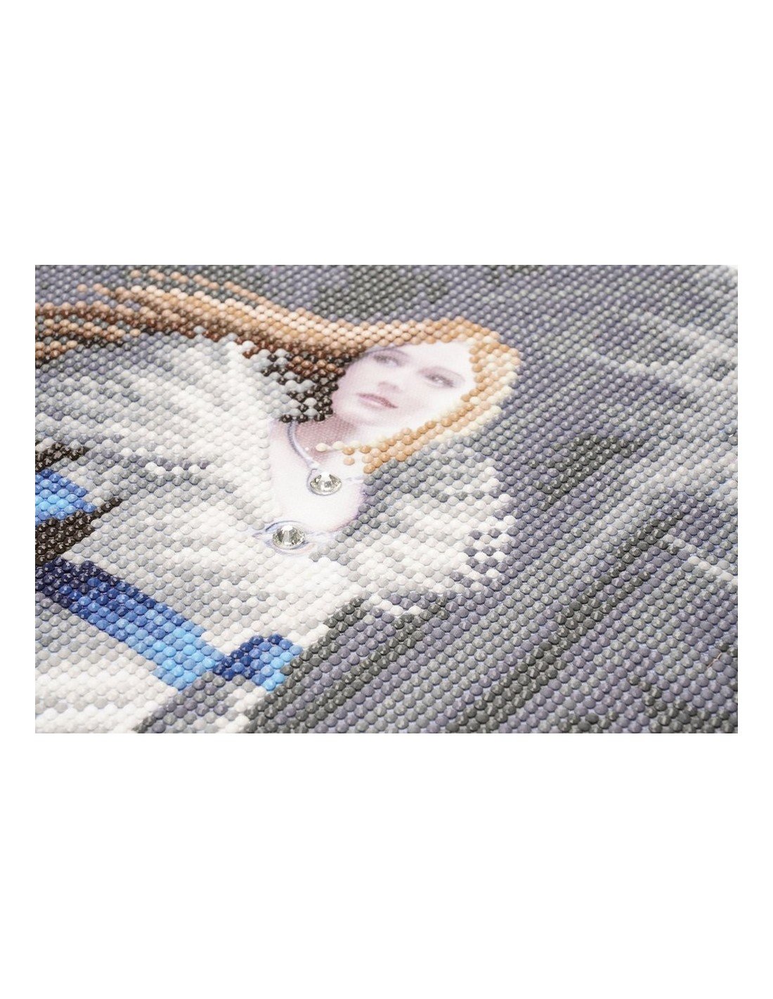 2.Padėkite šalia darbo įrankius. Švelniai įspauskite dėliojimo pieštuką į minkšto vaško kvadratėlį taip, kad dalis vaško liktų jo viduje. Suberkite vieno maišelio kristalus į lėkštutę. Pakelkite apsauginę foliją ant piešinio, bet nenuimkite jos pilnai.