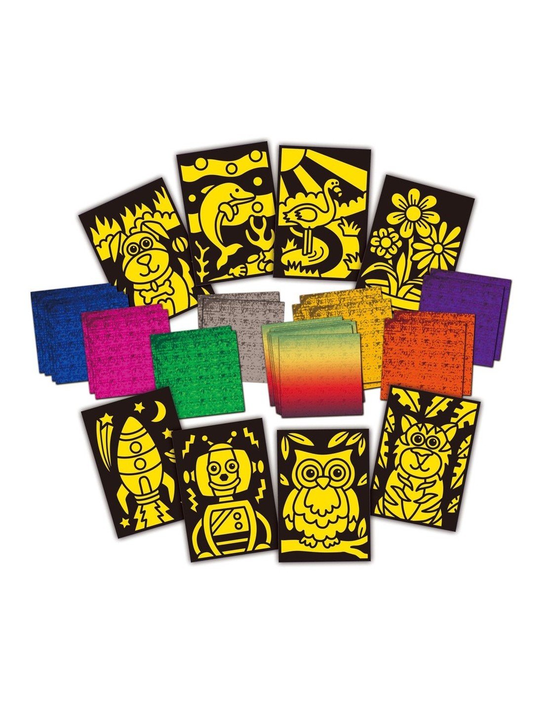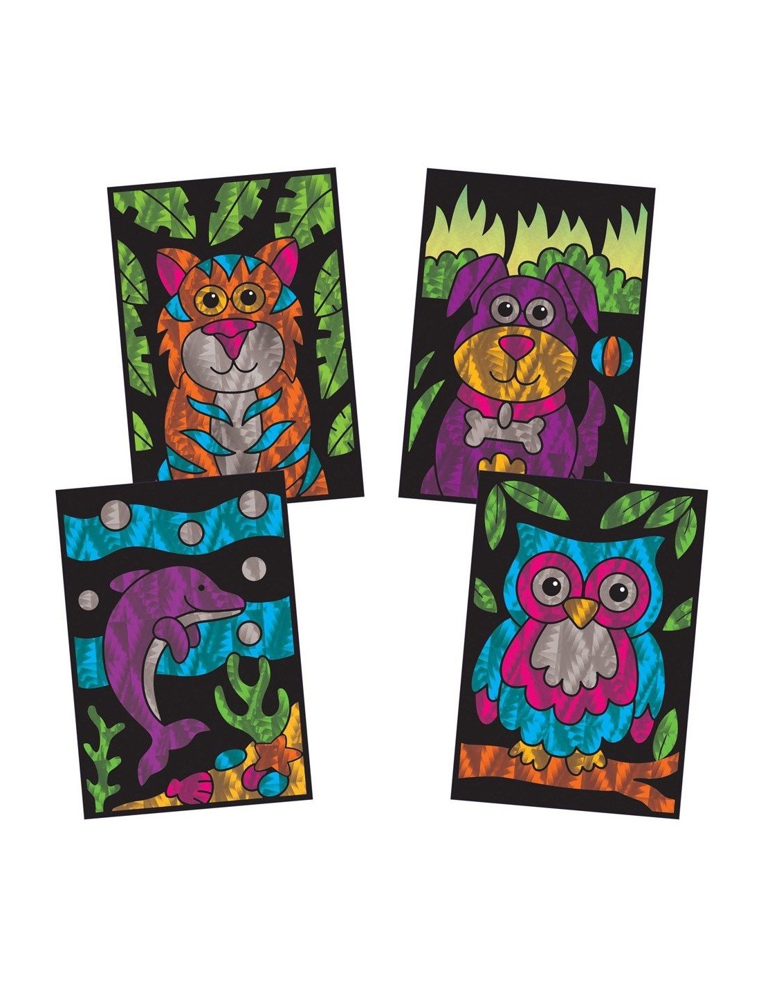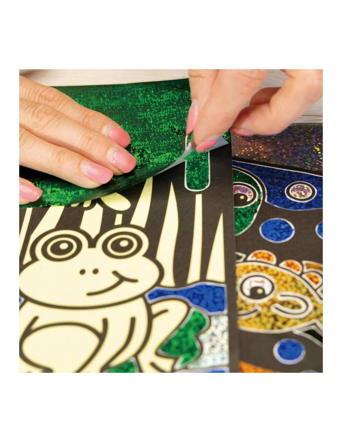Sukūrkite 8 blizgančius paveikslėlius su šiuo folijos meno rinkiniu. Tiesiog nulupkite paveiksliuko dalį, pridėkite prie jos foliją ir patrinkite pirštu. Pakelkite pridėtos folijos lapą ir jį persikels ant lipnaus paveiksliuko paviršiaus. Sudėtis: 25 folijos asortimento lapai, 8 paveikslėliai (dydžiai 18x12.5 cm), instrukcija.