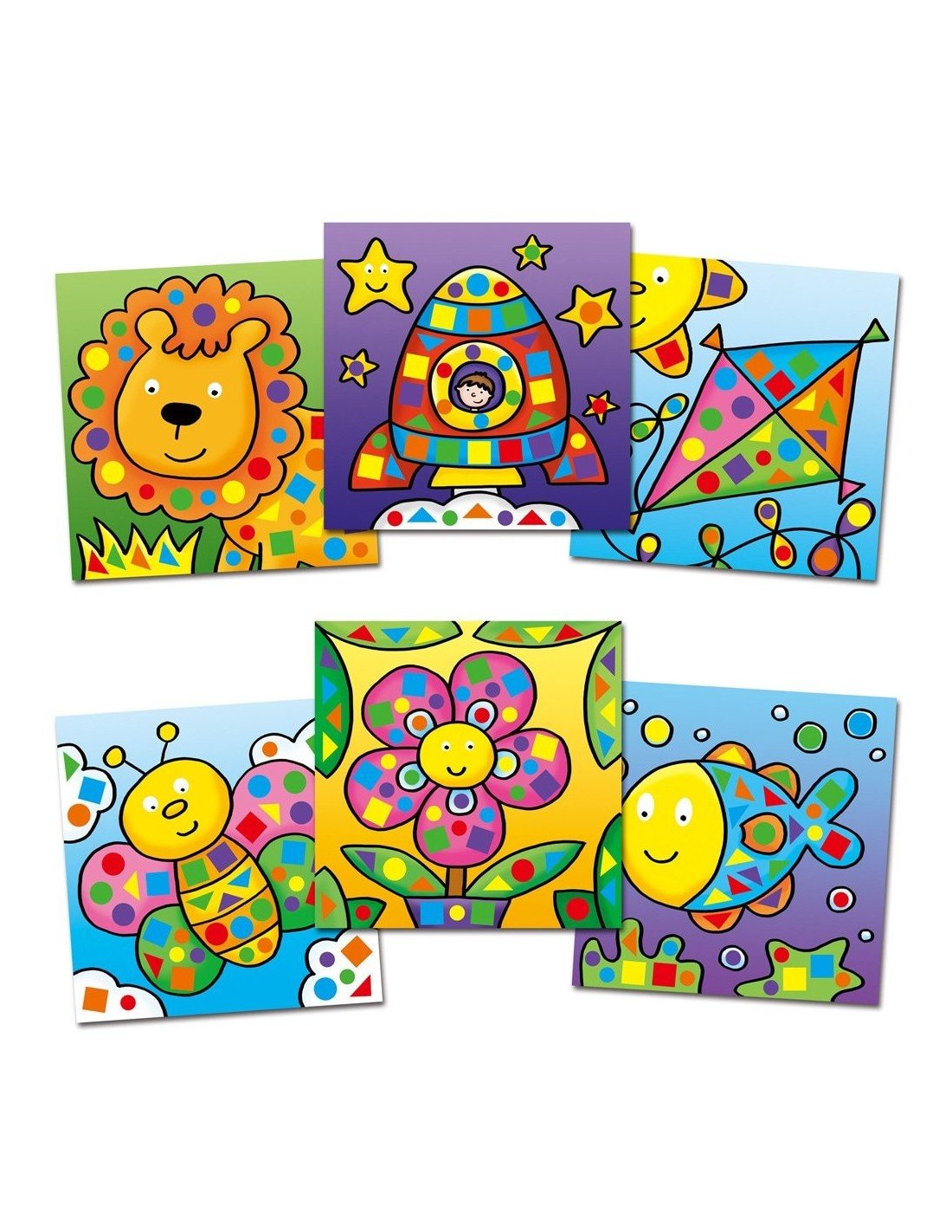 Linksma veikla skatinanti rankų miklumo vystimą, spalvų ir formų derinimo įgūdžius, kol vaikas bando surasti spalvotas dalis 6 mozaikų sukūrimui. Lipnios dalys iš pūtų puikiai tinka kelionėms. Sudėtis: 6 paveikslai (dydis 20x20cm), 6 lapai su 400 skirtingų formų ir spalvų, lipnių dalių iš pūtų, instrukcija.