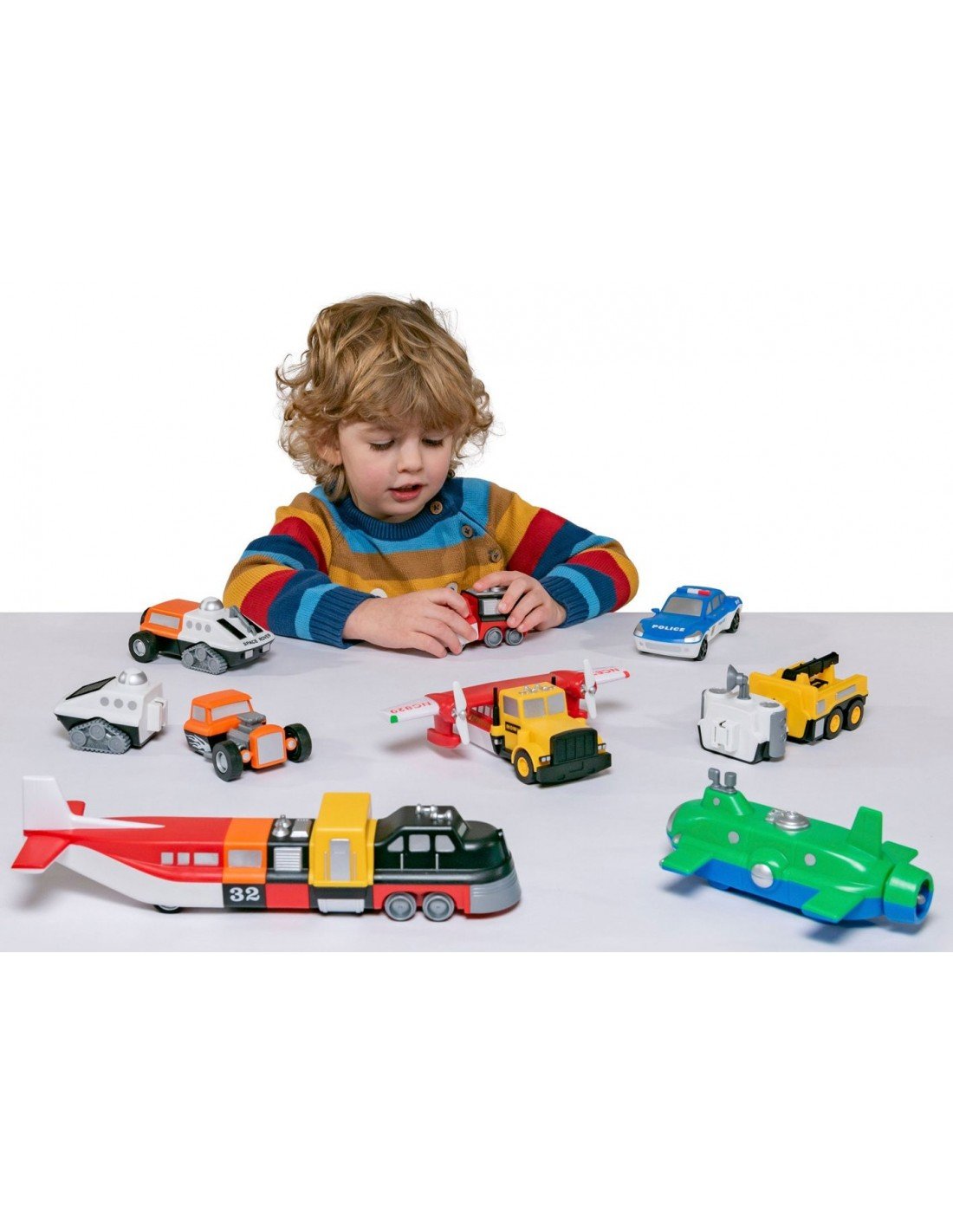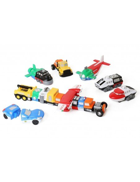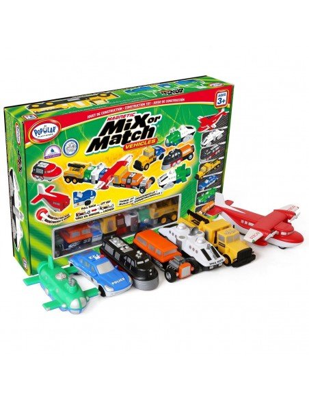 Sveiki atvykę į “Mix and Match” transporto priemonių odisėją! Paties įvairiausio amžiaus vaikai galės mėgautis unikaliomis magnetinių detalių, kurios gali būti dėliojamos pačiais įvairiausiais būdais, kombinacijomis. Galėsite sukurti jau paruoštus modelius arba pasitelkti fantaziją bei maišant detales tarpusavyje sukurti pačius netikėčiausias ir įdomiausias transporto priemones,virš 100 variantų! Ir tai dar ne viskas! Šis spalvinės tematikos transporto priemonių rinkinys yra suderinamas su kitais šios serijos rinkiniais, todėl suteikia nesibaigiančias galimybes kurti pačias netikėčiausias transporto priemonių konfigūracijas. Didelės detalės yra saugios ir patogios mažiesiems bei suteikia daug džiaugsmo žaidžiant, o magnetinė jungimo sistema leidžia detales vieną su kita sujungti ir atskirti itin greitai ir paprastai.