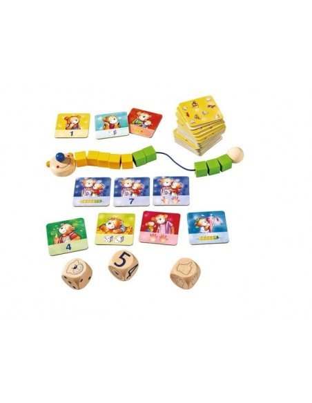Lavinantis 4 žaidimų rinkinys skirtas 2-5 žaidėjams(4-8 metų). Su protingo meškeno skaičiuokle ir 3 dideliais(4cm) žaidimo kauleliais.Skaičiai ir pradinė aritmetika nuo 1 iki 10. Turinys: 1 protingojo meškeno skaičiuoklė