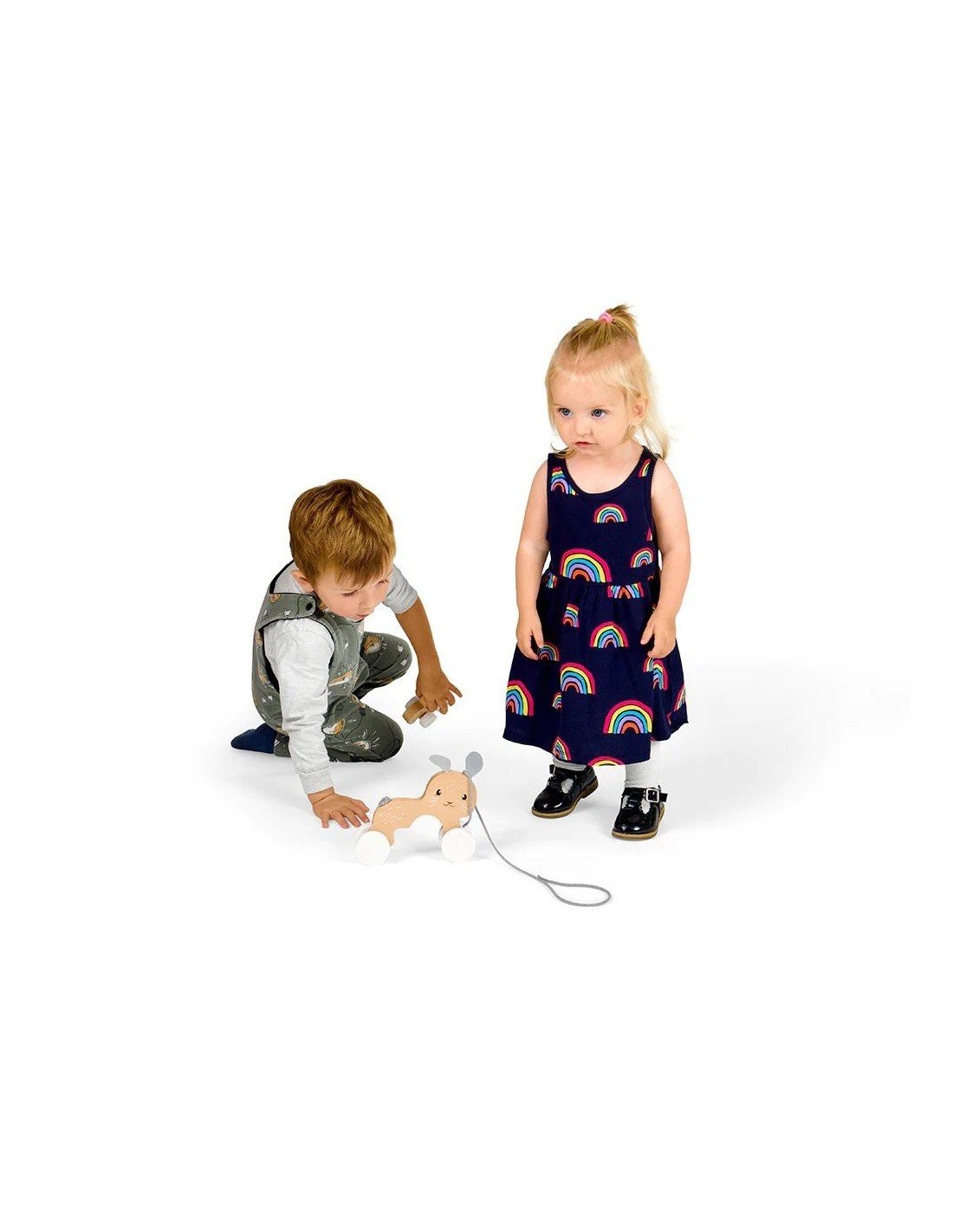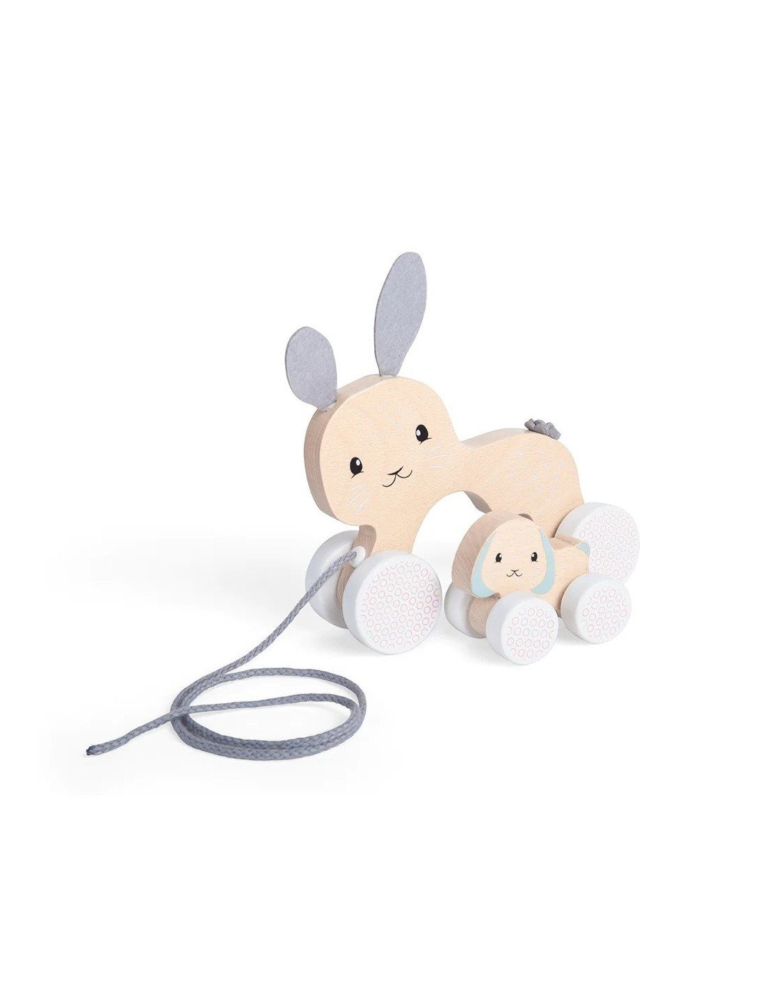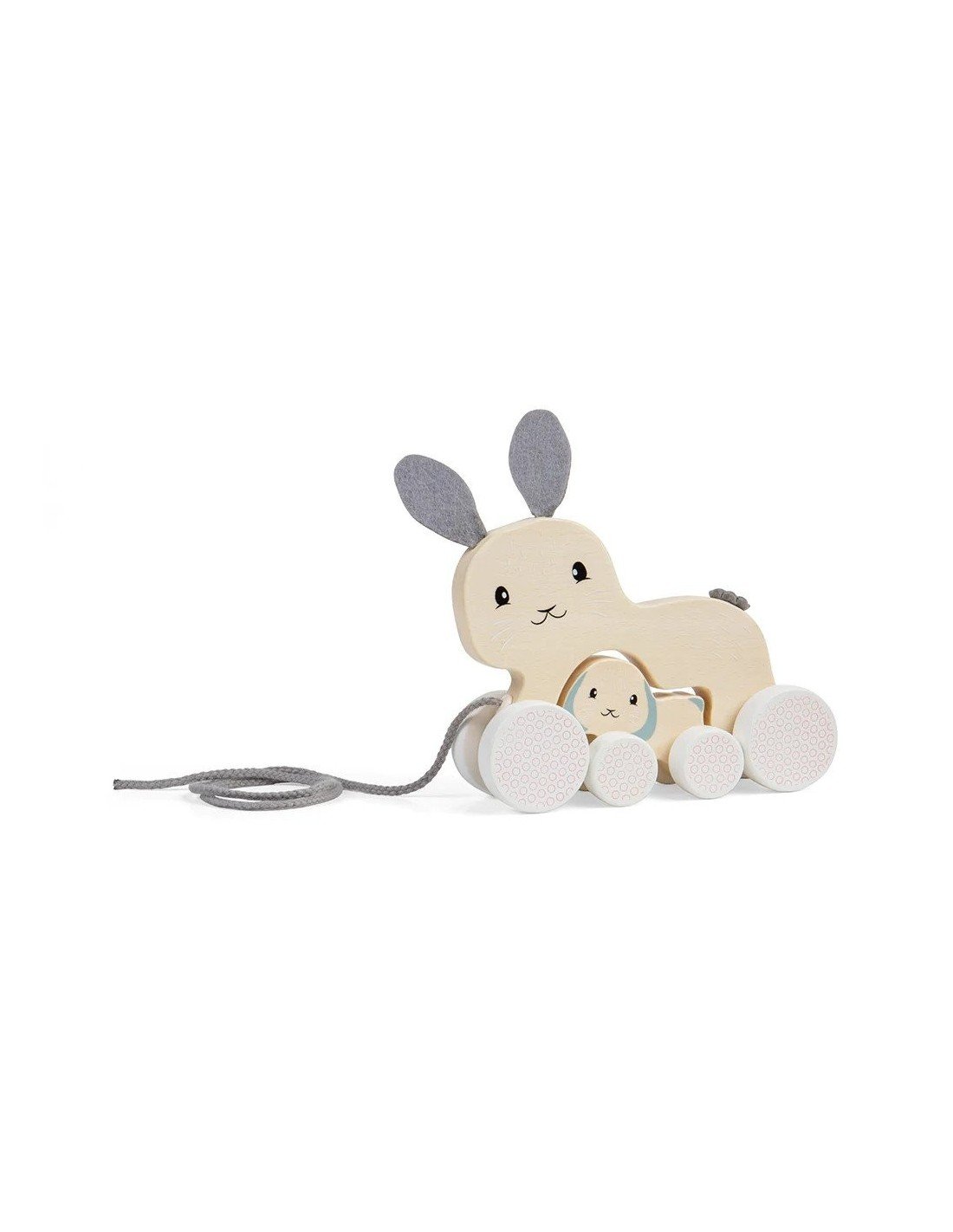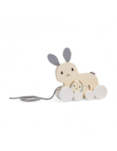 Traukiamas medinis žaislas triušis mamytė su triušiuku