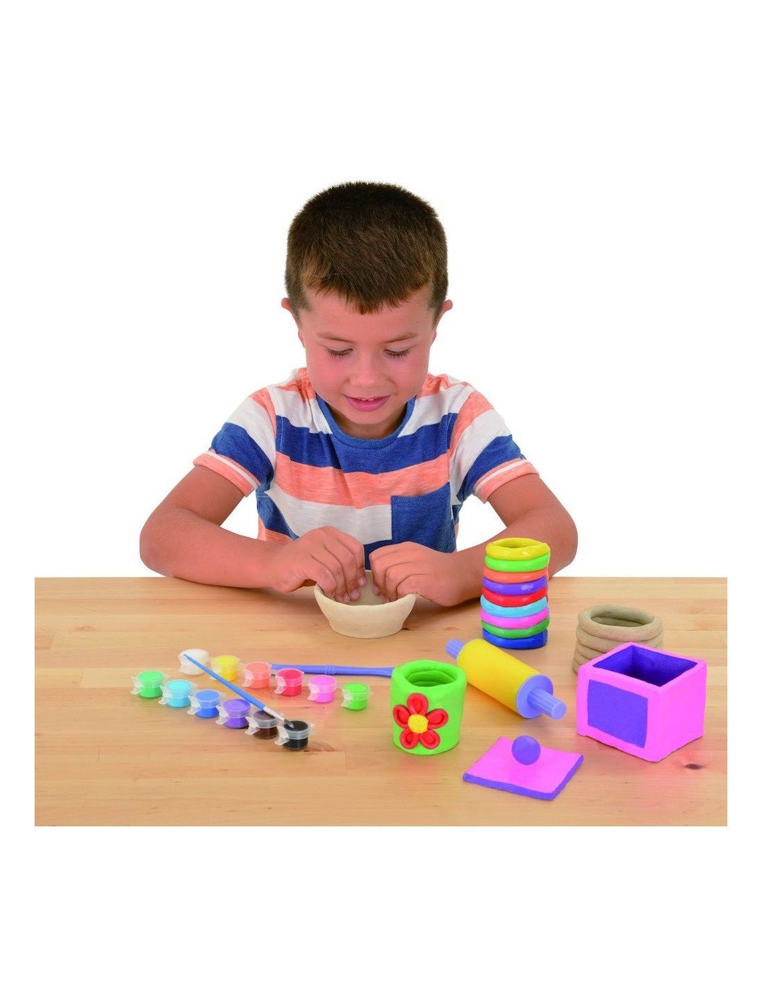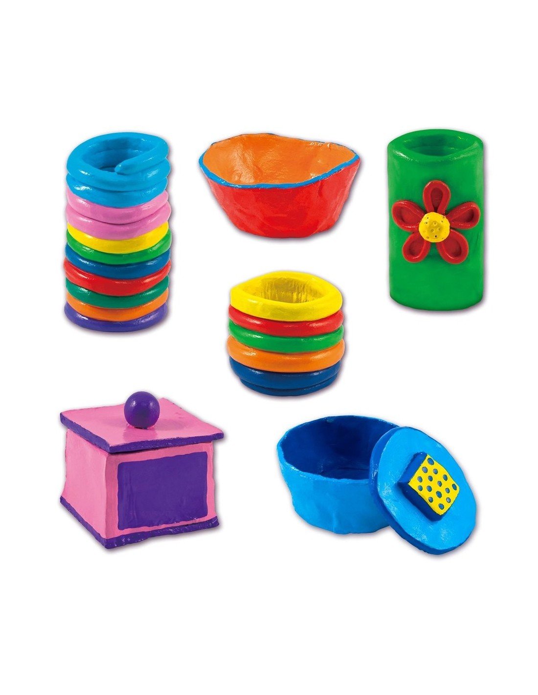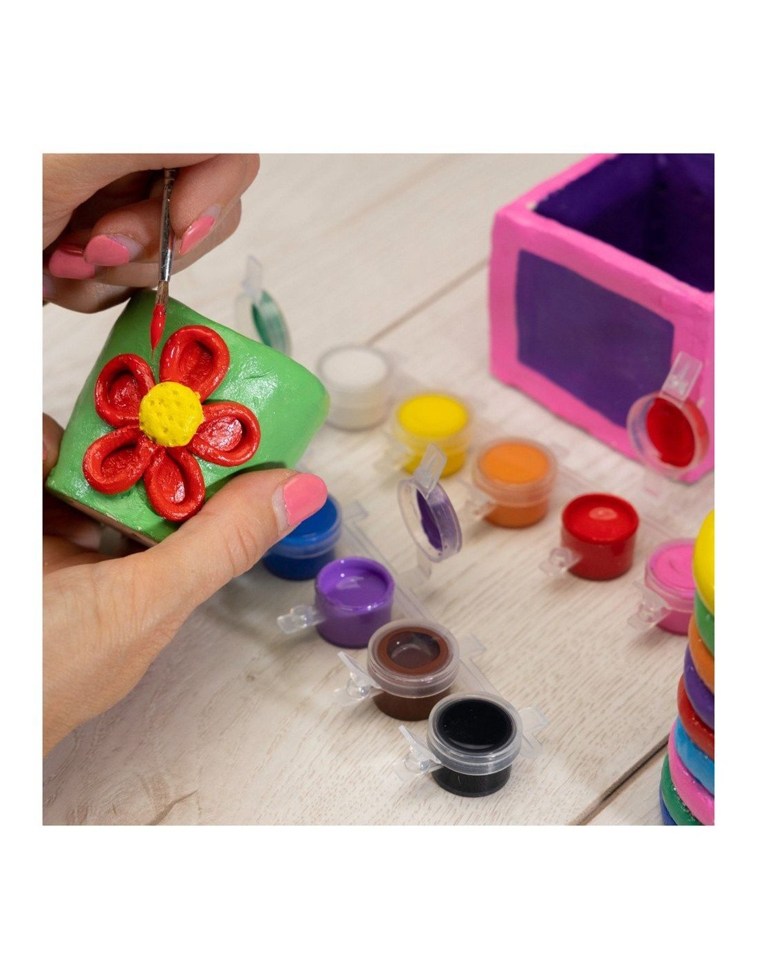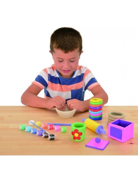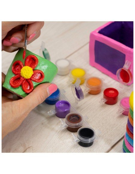Pasidaryk ir nuspalvink molinių puodelių rinkinį.Šis rinkinys suteiks galimybę susipažinti su įvairiomis puodelių gamybos technikomis:minkomi puodeliai,puodeliai iš plokščių,iš spiralių, kurios pagaminsi iš ore džiūstančio molio ir nuspalvinsi specialiais keramikai skirtais dažais.Sudėtis:1.2kg ore džiūstančio molio, volelis,modeliavimo įrankis,12*2.3ml spalvoti keramikos dažai,teptukas, instrukcija.