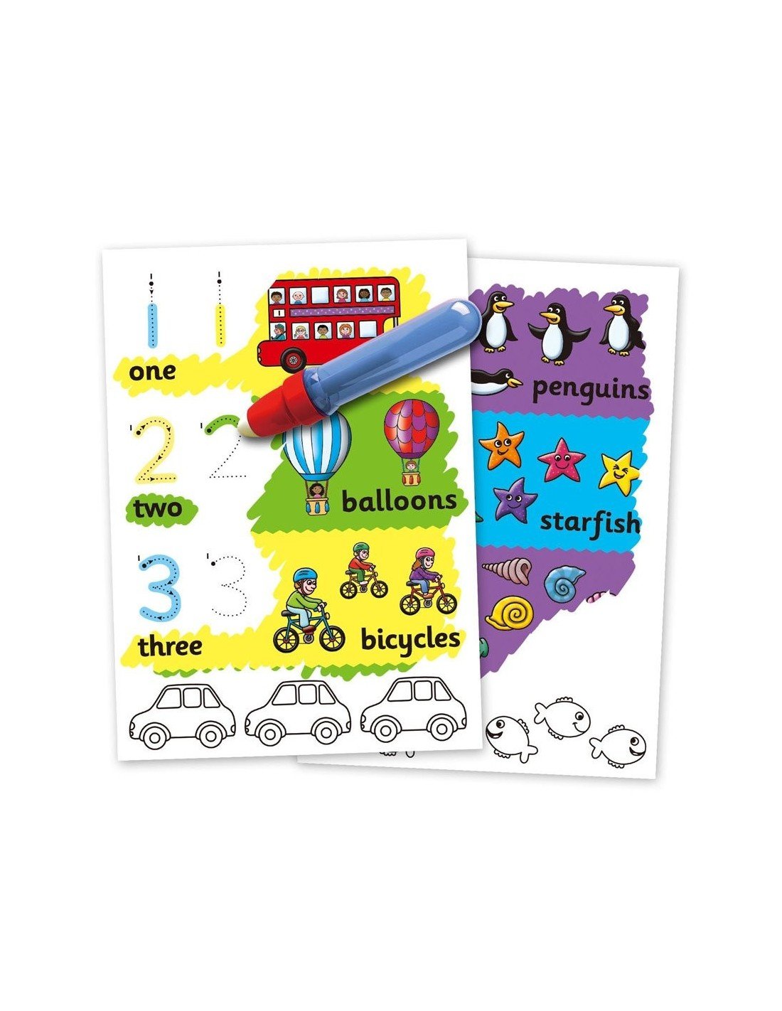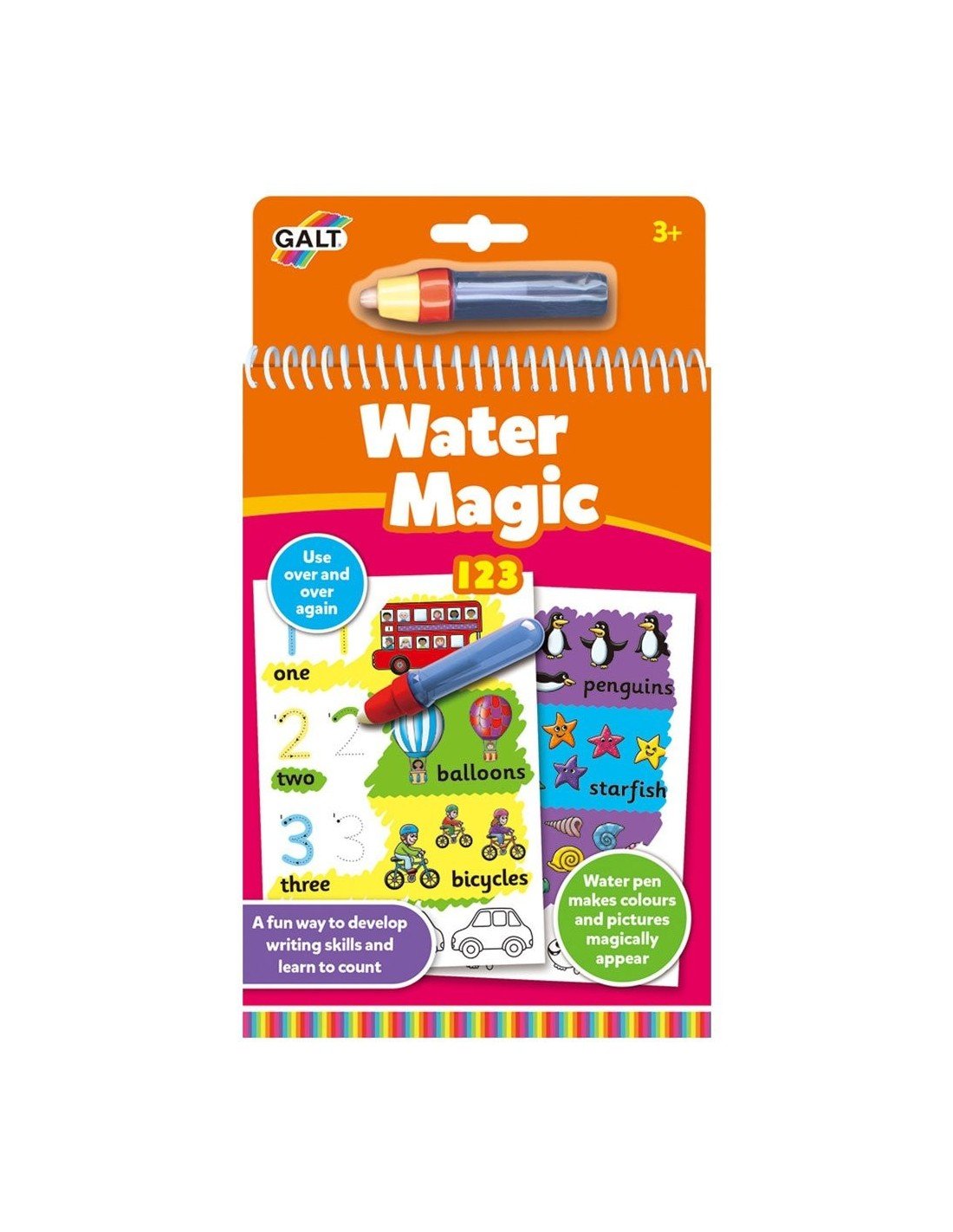 Daugkartinio naudojimo spalvinimo knygutė su vandens pieštuku. Nuspalvink lapą vandeniu ir atsiras puikus spalvotas piešinukas,kuris vėl išnyks, kai tik vanduo išdžiūs. Galima spalvinti vėl ir vėl. Ideali naudoti kelionėje.
