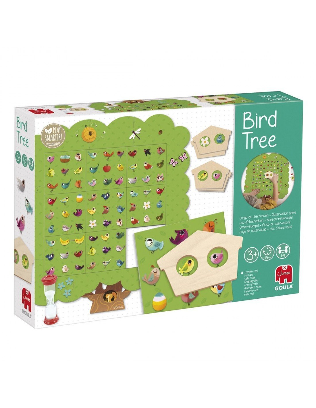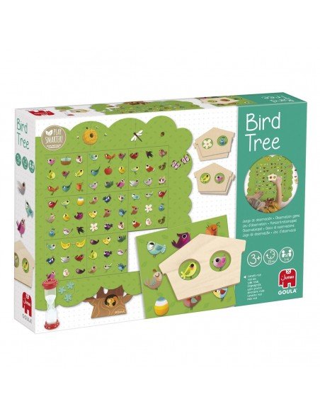 Žaidimas Paukščių medis, 3m.+, dėlionė-medis 17 det., 1 medinis namelis, 24 kortos, 1 smėlio laikrodis