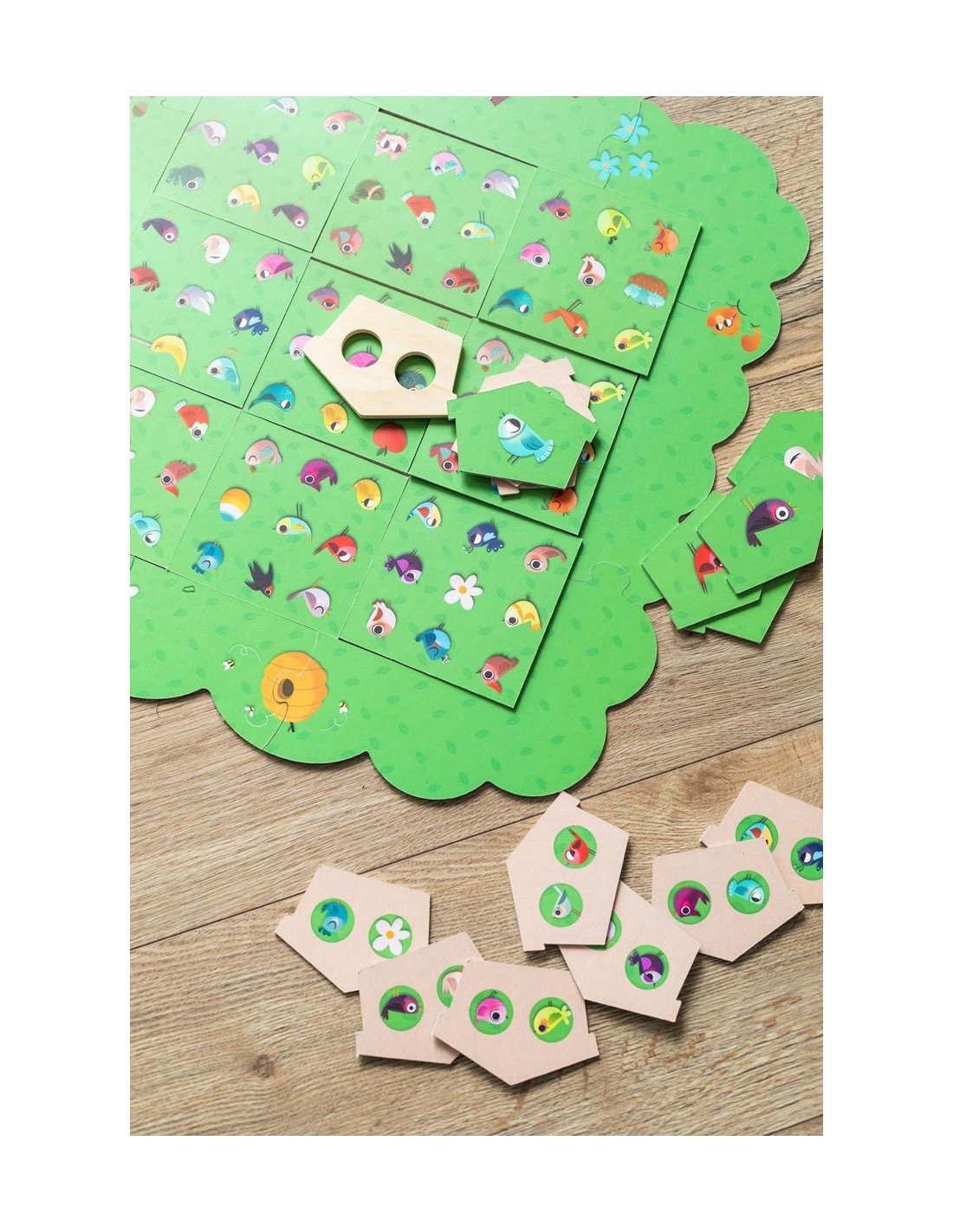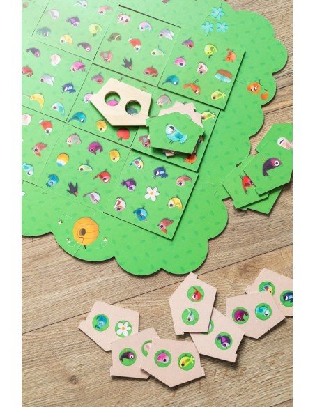 Kaip žaisti: Sudėkite išorinį medžio kontūrą ir padėkite į jį 9 vidines dalis laisva tvarka, bet visada vertikaliai pastatytais paukščiais.Vidinės medžio kortelės yra dvipusės ir gali būti padėtos bet kuria iš jų.