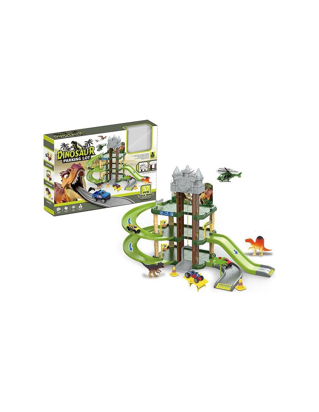 Garažas Dinosaur, 35x45x25 cm, 2 mašinėlės + 1 malūnsparnis