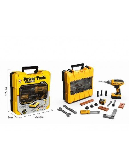 Įrankių rinkinys su veikiančiu gręžtuvu, 25x25x7.5 cm