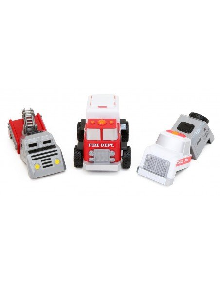 Šie akį traukiantys, dideli sunkvežimiai sukurti atsižvelgiant į jauniausius statytojus. Spalvingos detalės lengvai laikomos rankose, o mūsų magnetinė užraktų sistema leidžia lengvai surinkti. Kiekviena transporto priemonė rieda ant tikrų guminių padangų ir turi judančią detalę, kuri prideda žaidimo vertės! Rinkitės tarp statybų ir gaisrininkų temų. Abu rinkiniai yra suderinami vienas su kitu, kad būtų galima sukurti dešimtis unikalių transporto priemonių!
