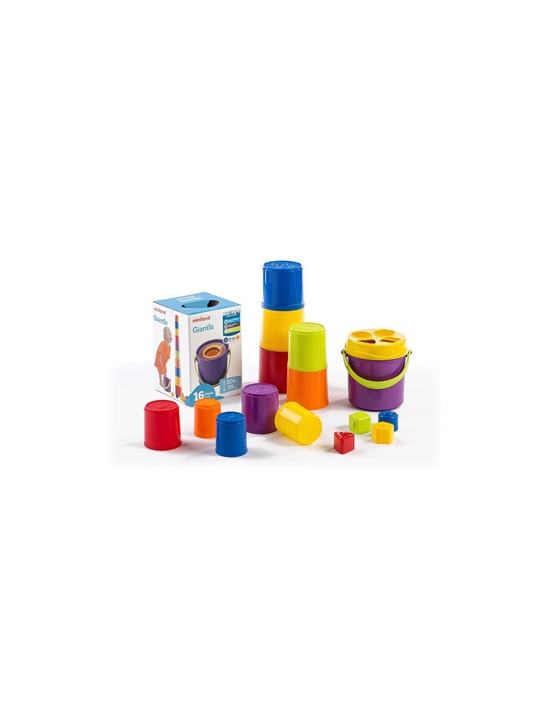 Du žaidimai viename. Pirmas žaidimas: 91cm aukščio bokšto, susidedančio iš 10 mažiejančių indelių pastatymas. Vaikus sužavės galimybė sukurti bokštą, kurį po to galima nugriauti. Visos bokšto dalys gali būti sudėtos į kibirą su rankena, kuris užima mažai vietos. Antras žaidimas: Kibirėlio dangtis turi skylutes atitinkančias skirtingoms formoms iš rinkinio. Formas galima taip pat naudoti žaidžiant su smėliu arba vandeniu, nes jos turi mažas skylutes pro kurias gali tekėti vanduo.