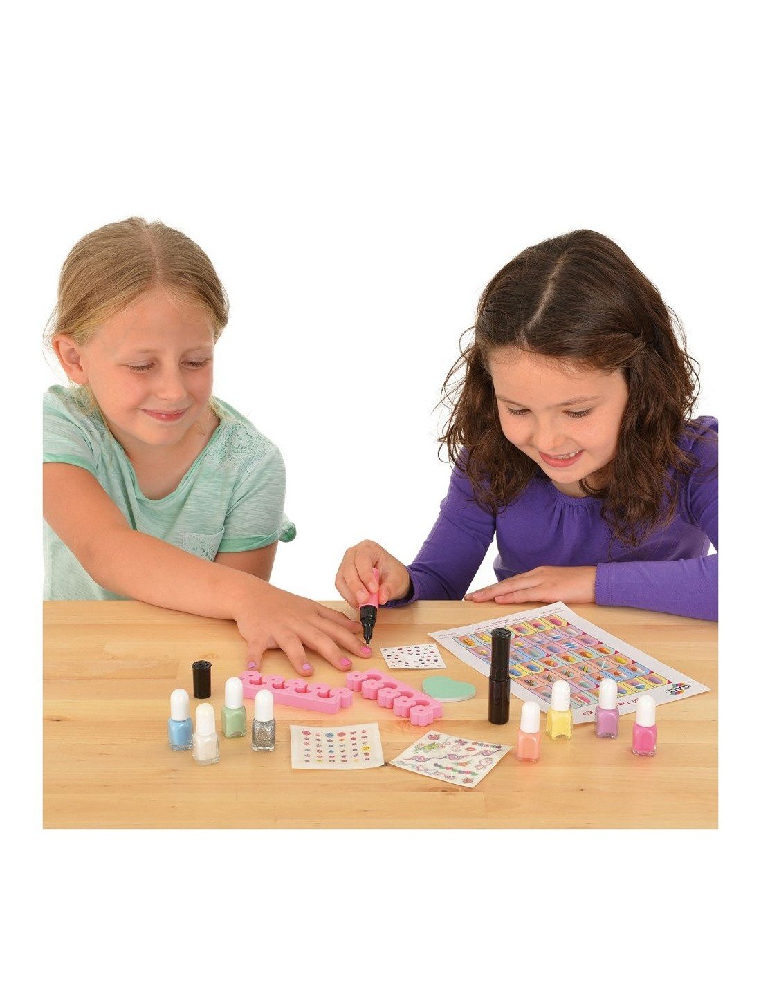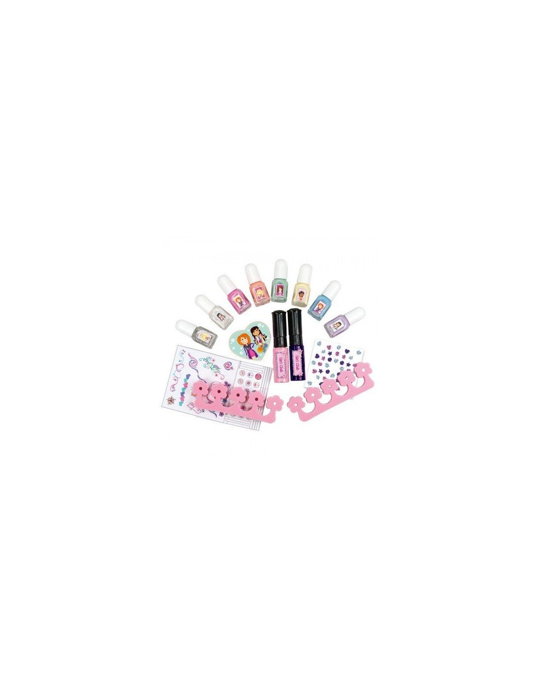 Jaudinantis rinkinys su 7 spalvų lakais, kuriais galėsite nuspalvinti savo nagus ir pamarginti juos 2 nagų pieštukais. Papuoškite nagus lipdukais, blizgiu laku ir brangakmenukais. Rinkinukas puikiai tinka vakarėliams. Sudėtis: 8 nagų lakai (7 spalvos ir 1 blizgus lakas), 2 nagų pieštukai, lipdukai nagams, brangakmenukai, perkeliamos tatuiruotės, 2 kojų pirštų pertvaros, nagų dildė, instrukcija lietuvių kalba.
