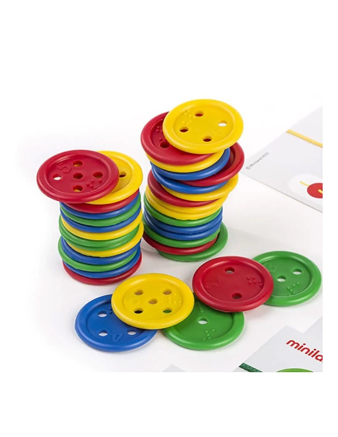 Didelės, spalvotos sagos, kurios turi nuo 1 iki 5 skylučių. Puikiai tinka skaičiavimo, rušiavimo, paprastų matematinių užduočių ir motorikos įgūdžių pamokoms. Kiekviena saga turi skaičiaus antspaudą bei to skaičiaus ekvivalentą brailio raštu. Rinkinyje taip pat yra instrukcija su užduočių patarimais.