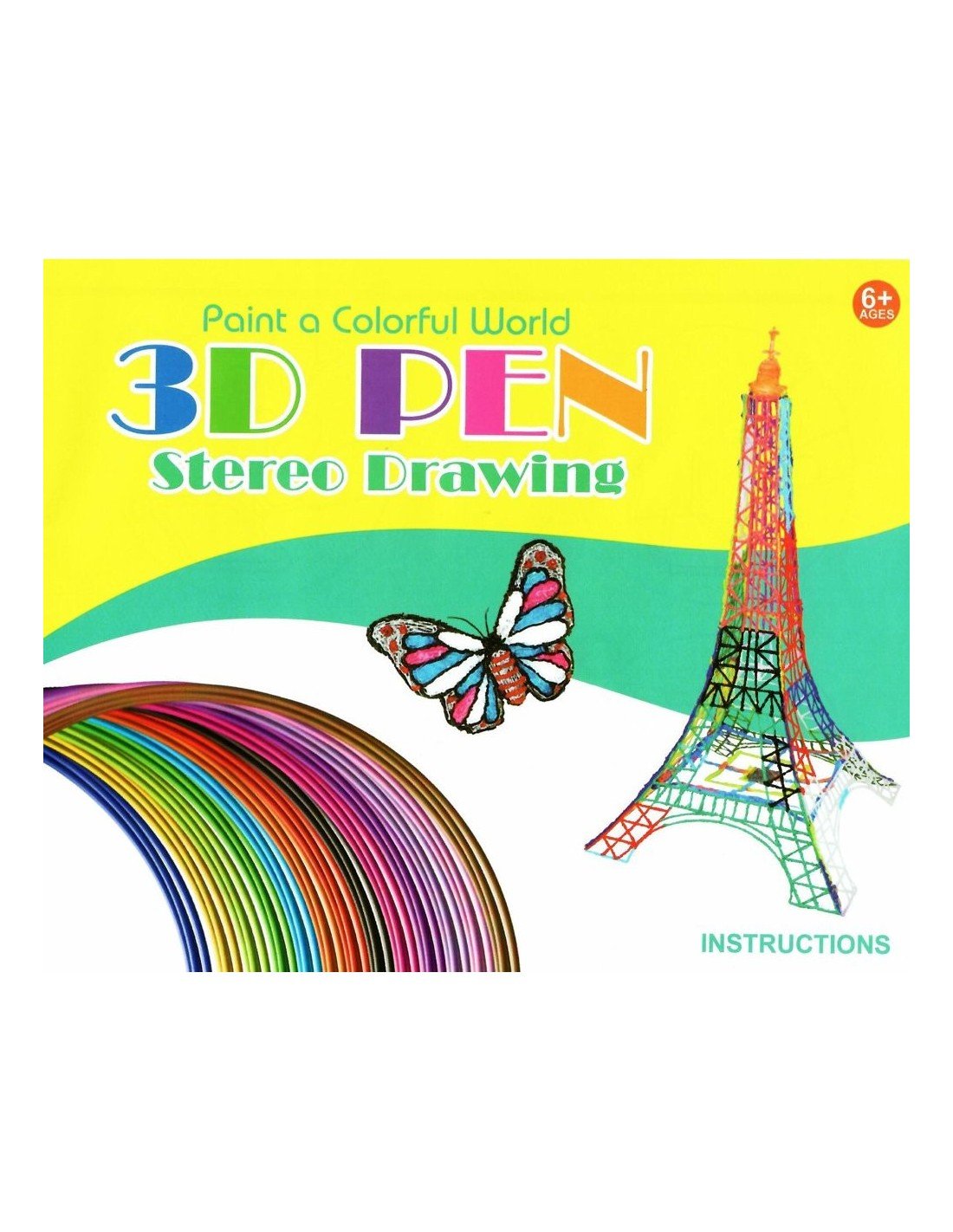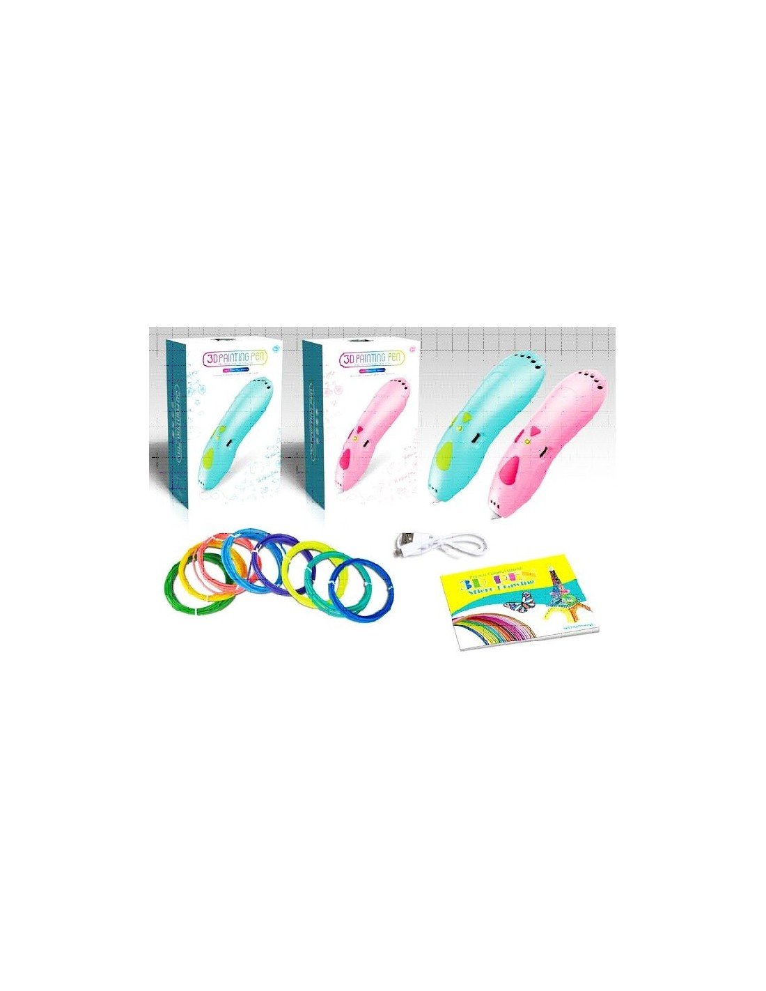 Rinkinys 3D piešimui su USB , 3D pieštukas + 8 spalvų vielutės + 10 šablonų + instrukcija