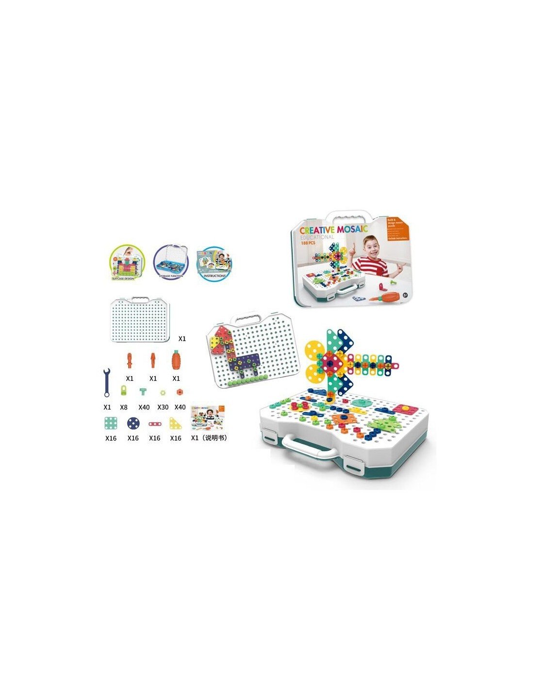 Mozaika su varžtais 188 det., 30x23x6cm