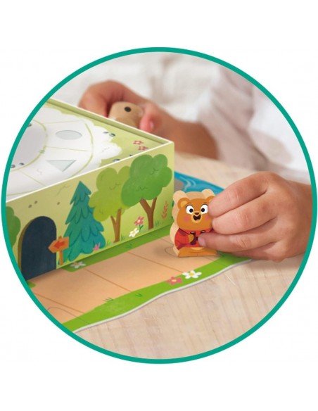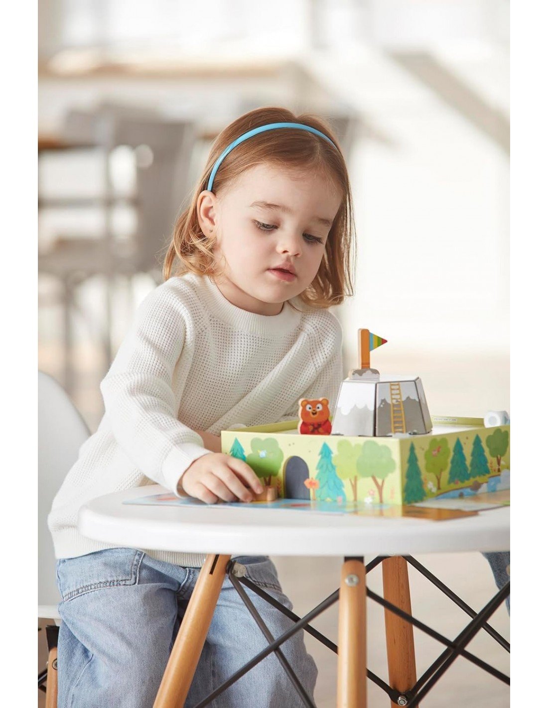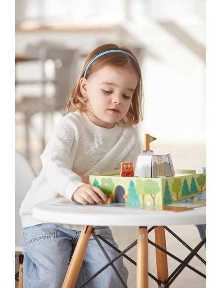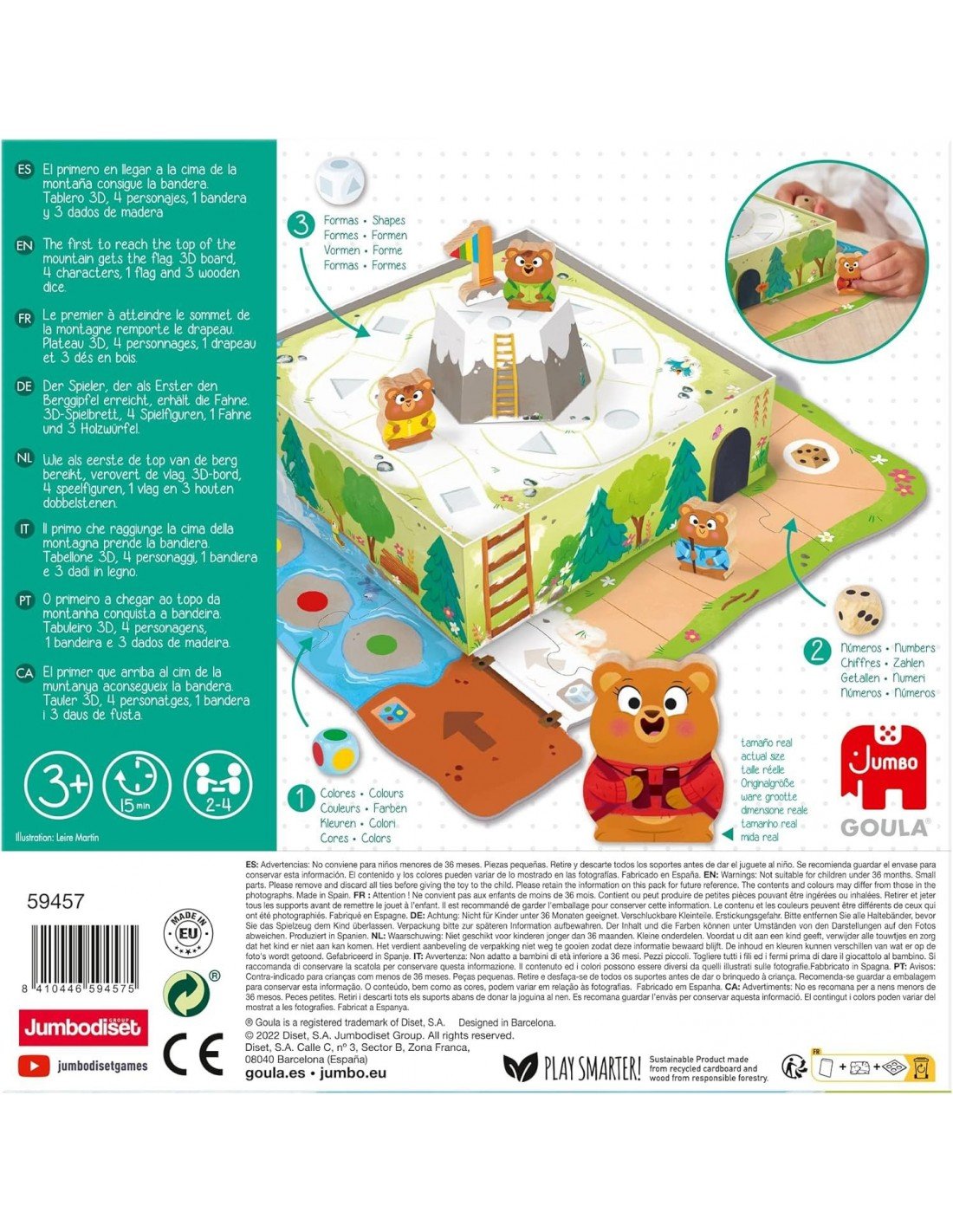 Stalo žaidimas skirtas vaikams nuo 3 metų. Pirmasis pasiekęs kalno viršūnę gauna vėliavą. Sudėtis: 3D žaidimo laukas, 4 mediniai meškiukai, 1 vėliava ir 3 kauleliai ( su spalvomis, su taškais ir su geometrinėmis formomis).