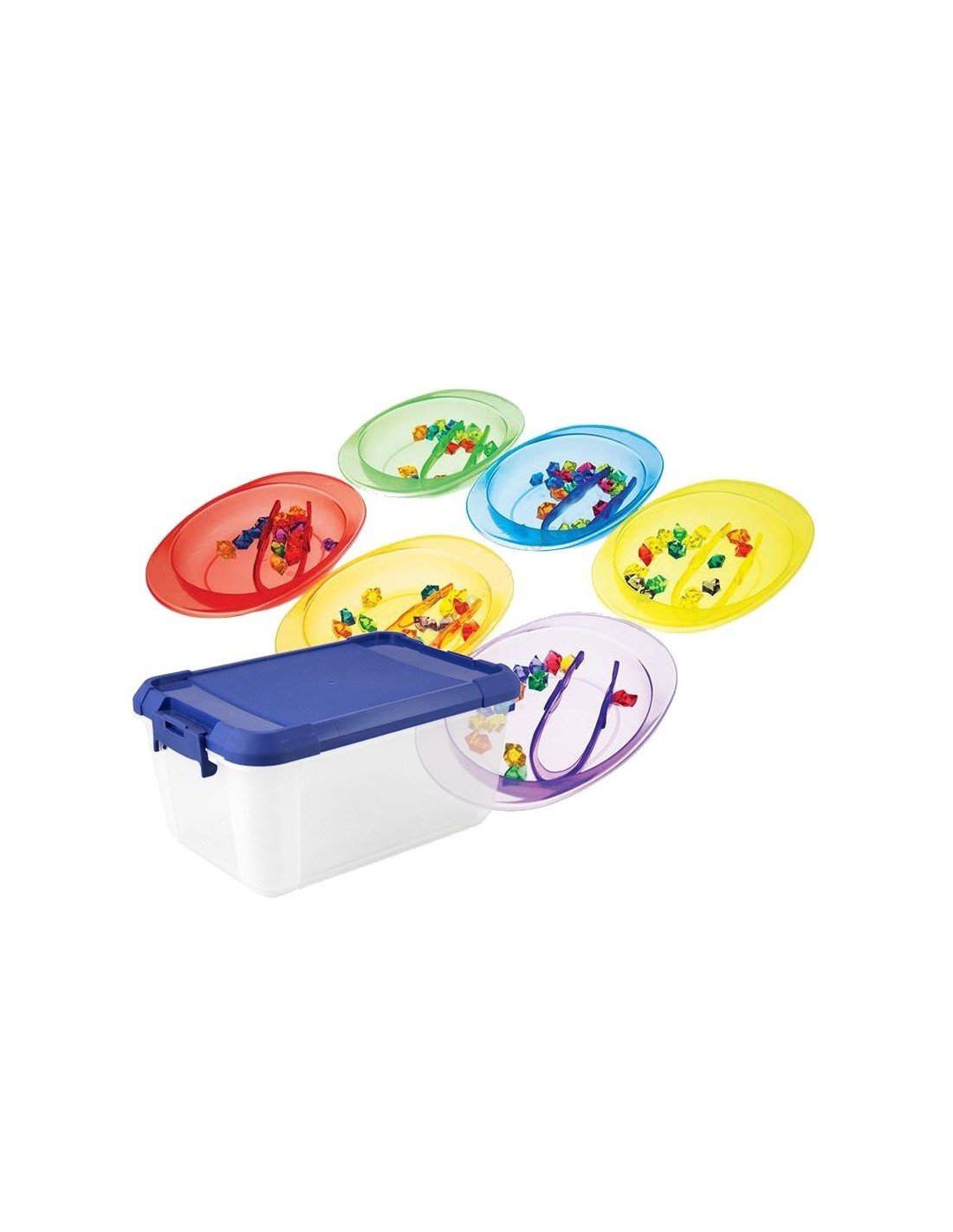 Rinkinys rušiavimui 6 lėkštės 24x16.5cm + 6 pincetai 15cm + 48 akmenukai(~2cm) 4spalvų