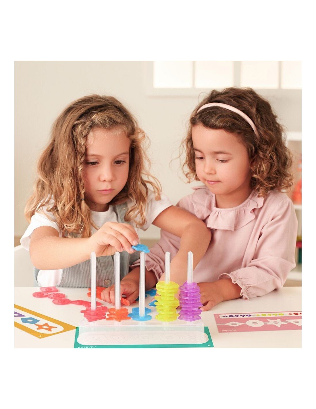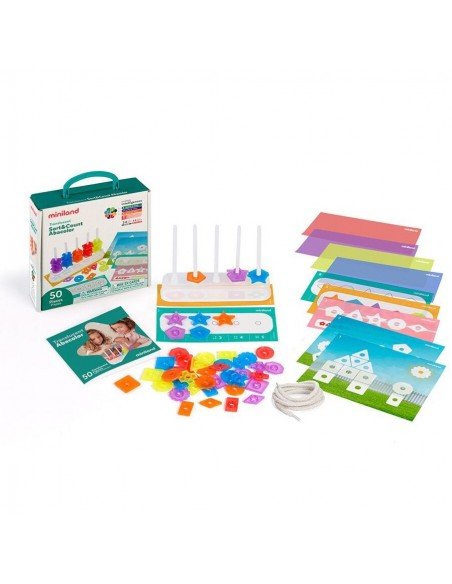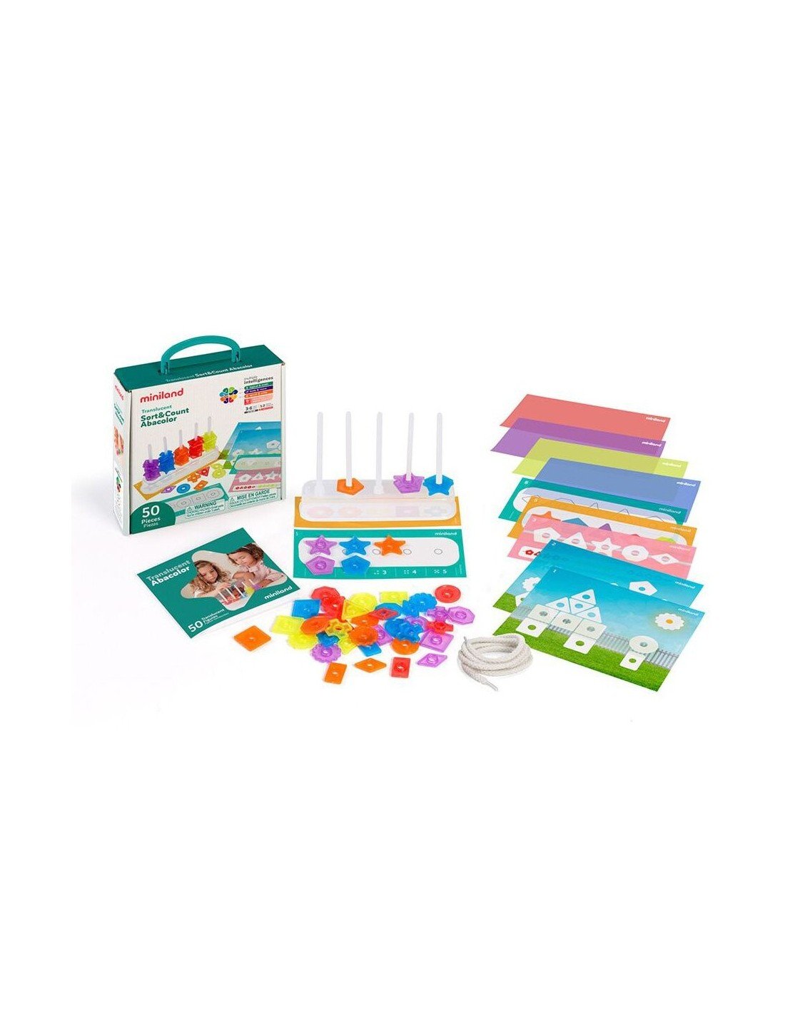 Rinkinys ABACOLOR SORT&COUNT, 50 skaidriu formų, 1 stovas, 2 virvelės, 14 skaidrių veiklos kortų