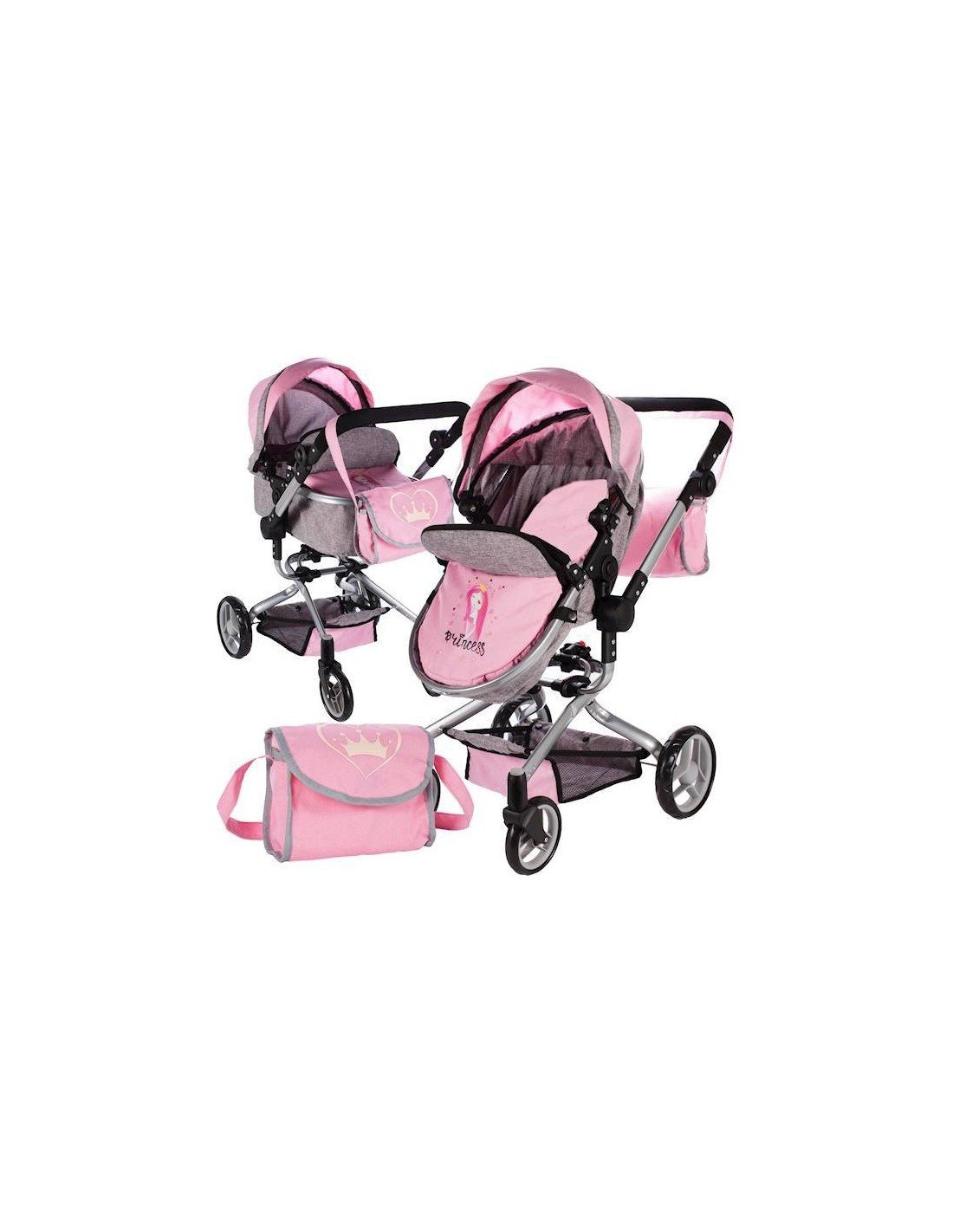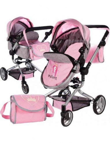 Vežimėlis metalinis 2 in 1 PRINCESS, 80x70x40 cm, krepšis lėlėi 58cm