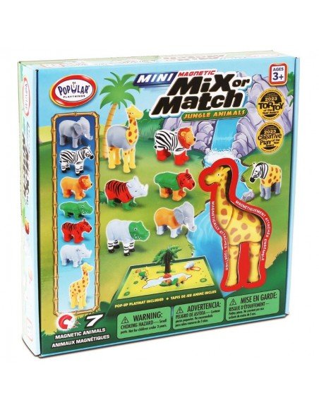 Šis „Mini Magnetic Mix or Match® Jungle Animals“ rinkinys pakelia kūrybinį žaidimą į naują lygį! Pridedamas erdvinis žaidimų kilimėlis praturtina vaiko žaidimo patirtį, perkeldamas jį į teminę aplinką.