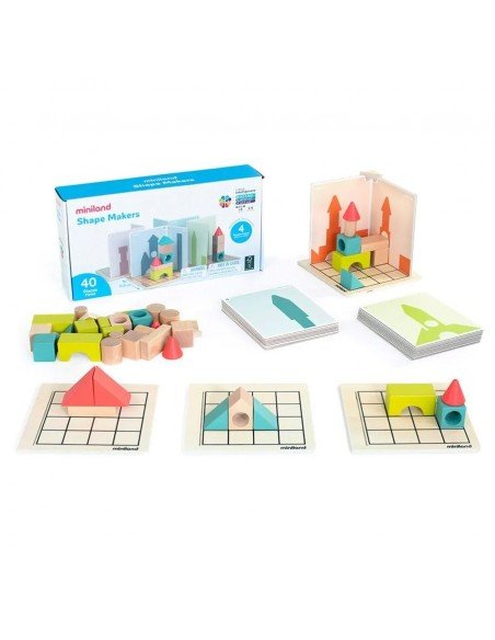 Žaidimas FORMŲ KŪRĖJAI, 40 medinių det.+24 užduotys + 4 mediniai žaidimo laukai, 5m.+