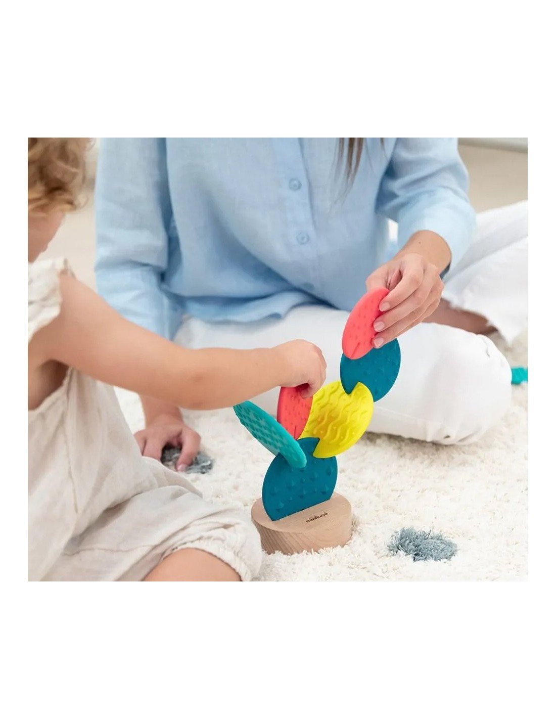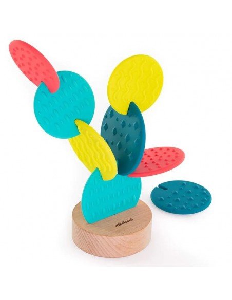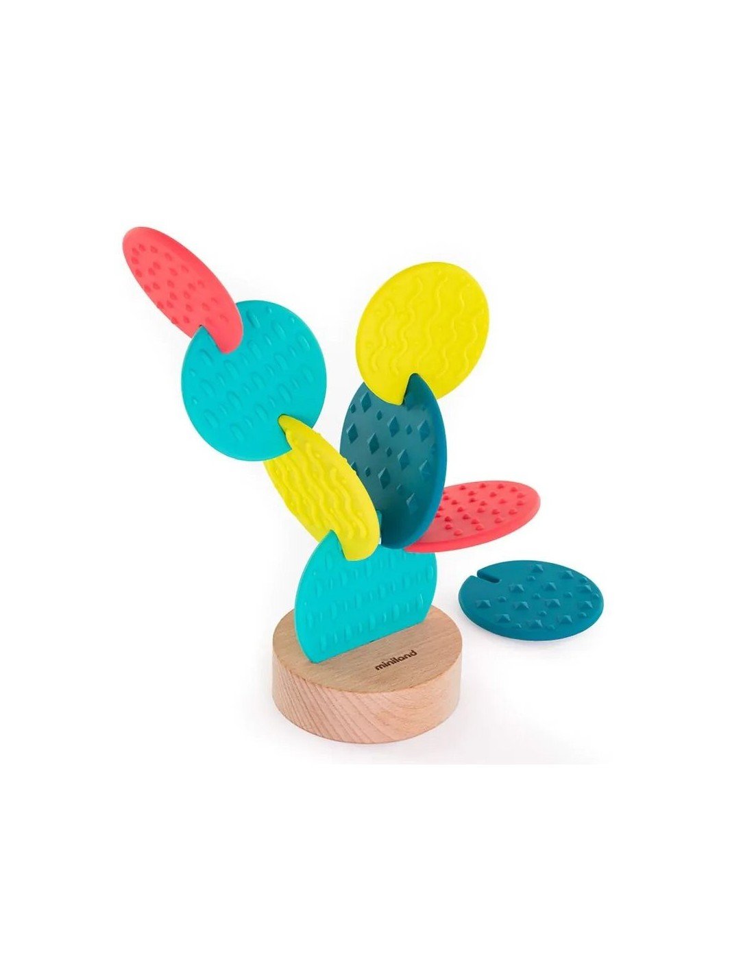 Sensorinis žaislas kaktuso formos.Sudėtyje yra 8 minkštos detalės skirtingų tekstūrų ir spalvų. Šis žaislas pereina visas panaudojimo stadijas padedant nuo kramtuko ir sensorinio žaidimo iki krovimo ir konstravimo, metant iššūkį pusiausvyrai.Jis padeda lavinti pagrindinius įgūdžius, tokius kaip erdvinis matymas, samprotavimas,logika ir smulkioji motorika.Detalės pagamintos iš minkšto silikono, o pagrindas iš medžio. Skirta vaikams nuo 12 mėn.