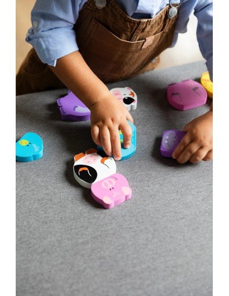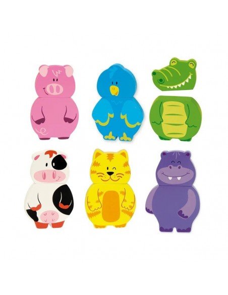 Magnetiniai mediniai gyvūnėliai iš 2 dalių, 12 mėn.+