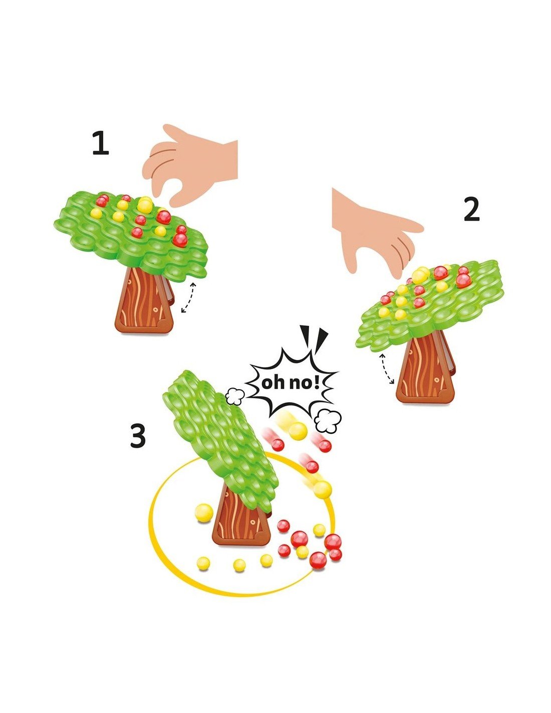 Nuostabus žaidimas, kuris testuoja jūsų pusiausvyros jausmą ir gravitacijos dėsnius.Kiekvienas žaidėjas savo ėjimo metu turi padėti raudoną arba geltoną obuoliuką ant siūbuojančio medžio lajos, stengiantis, kad viskas nesugriūtų: ar pavyks išlaikyti kontrolę ir išvengti nelaimės? Skirta: 5 - 99 metų.