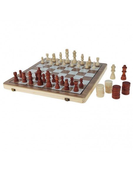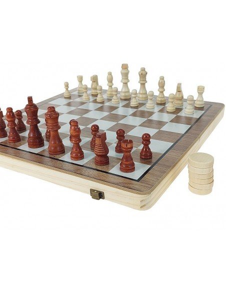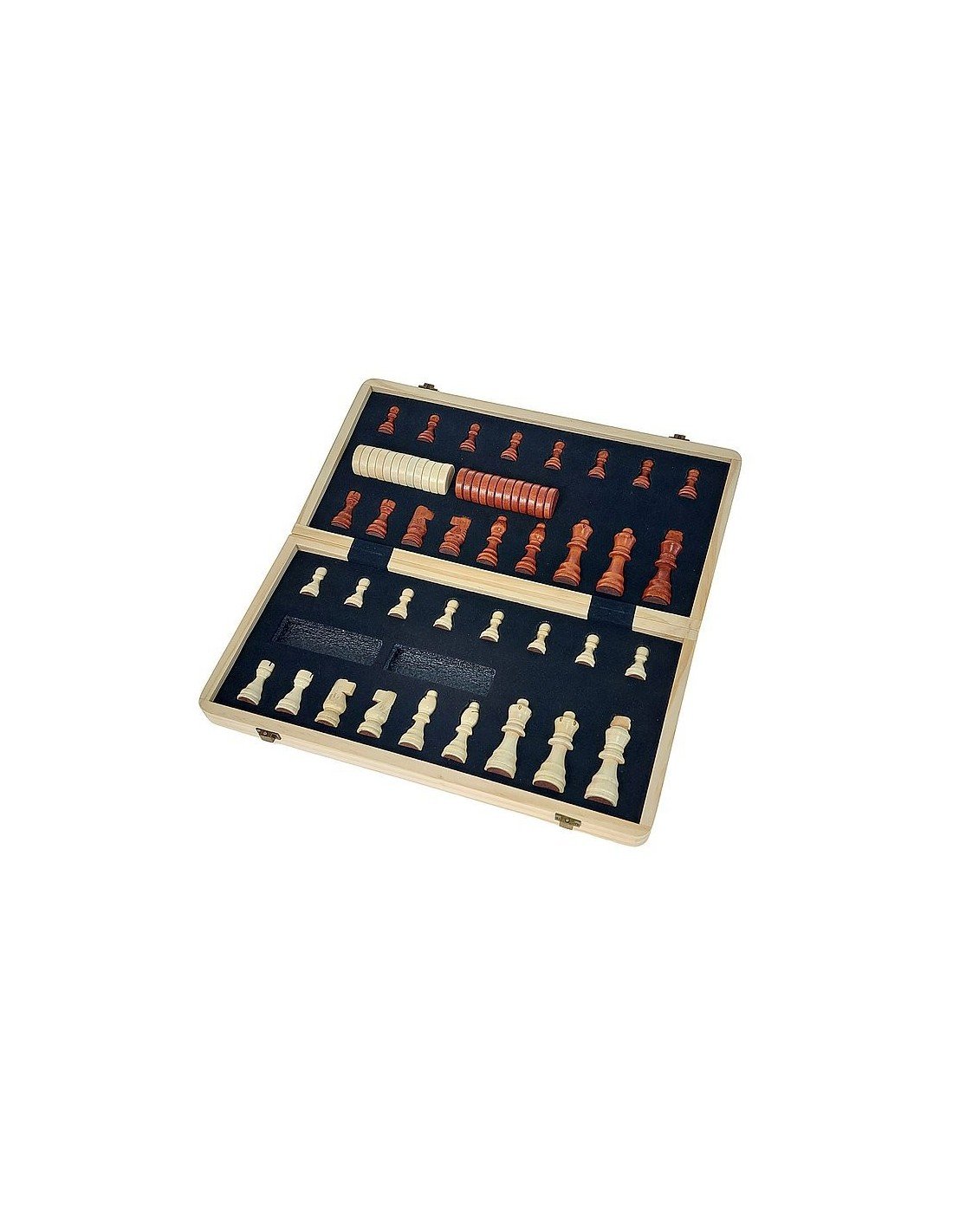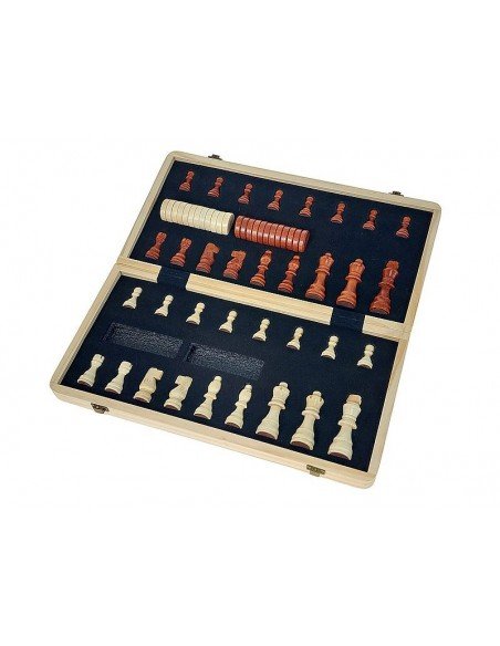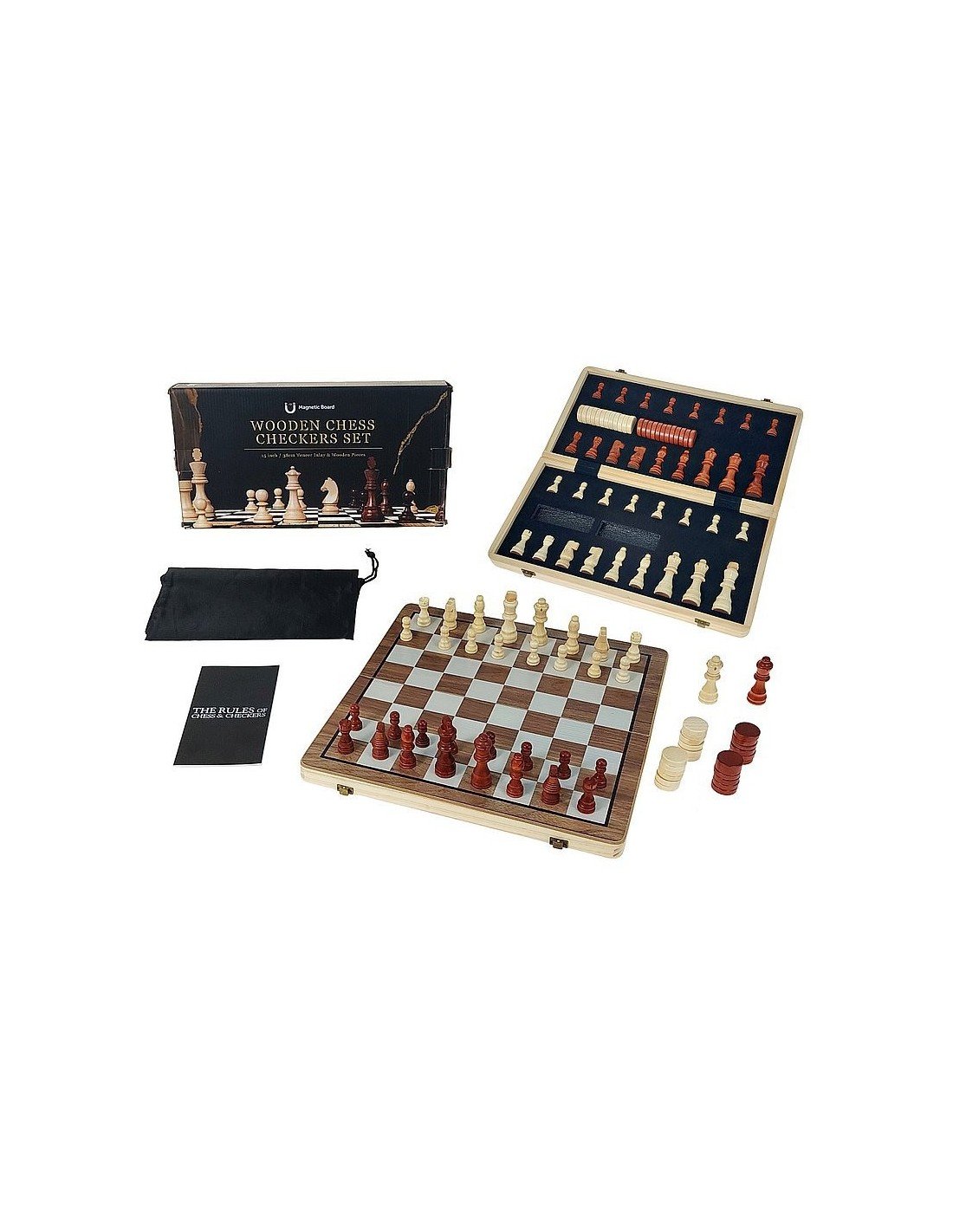 Mediniai magnetiniai šachmatai ir šaškės, lenta 38.5x38.5cm, kelioninis maišelis
