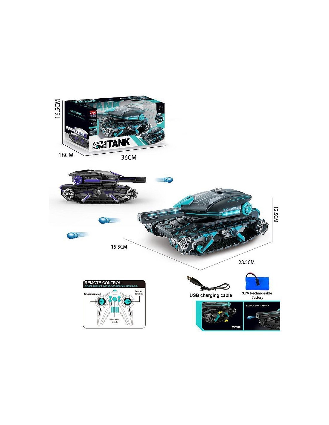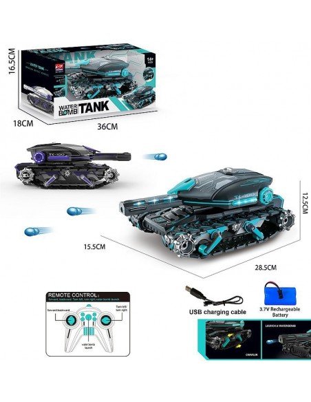 Radijo bangomis valdomas tankas, USB pakraunamas,šaudo vandens kulkomis